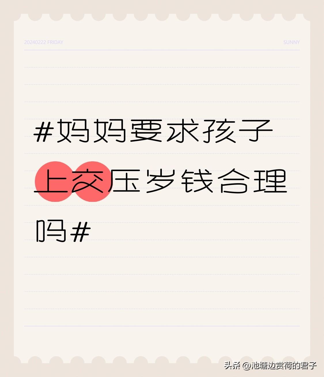 妈妈要求孩子上交压岁钱合理吗 妈妈要求孩子上交压岁钱合不合理,得分情况看。小时候我妈收我压岁钱,说是帮我存着,结果最后也没见着这笔钱,当时就觉得特不合理,感觉自己的“小金库”没了。但后来长大点明白,小孩子没什么理财能力,压岁钱放手里可能就乱花了。像我表弟,拿到压岁钱就去买一堆玩具,没几天就扔一边了。妈妈帮忙保管,能避免这种浪费。不过,妈妈也得跟孩子沟通好,让孩子知道钱没被“吞”,等孩子有一定理财意识了,再慢慢把支配权还给孩子,这样才比较合理。