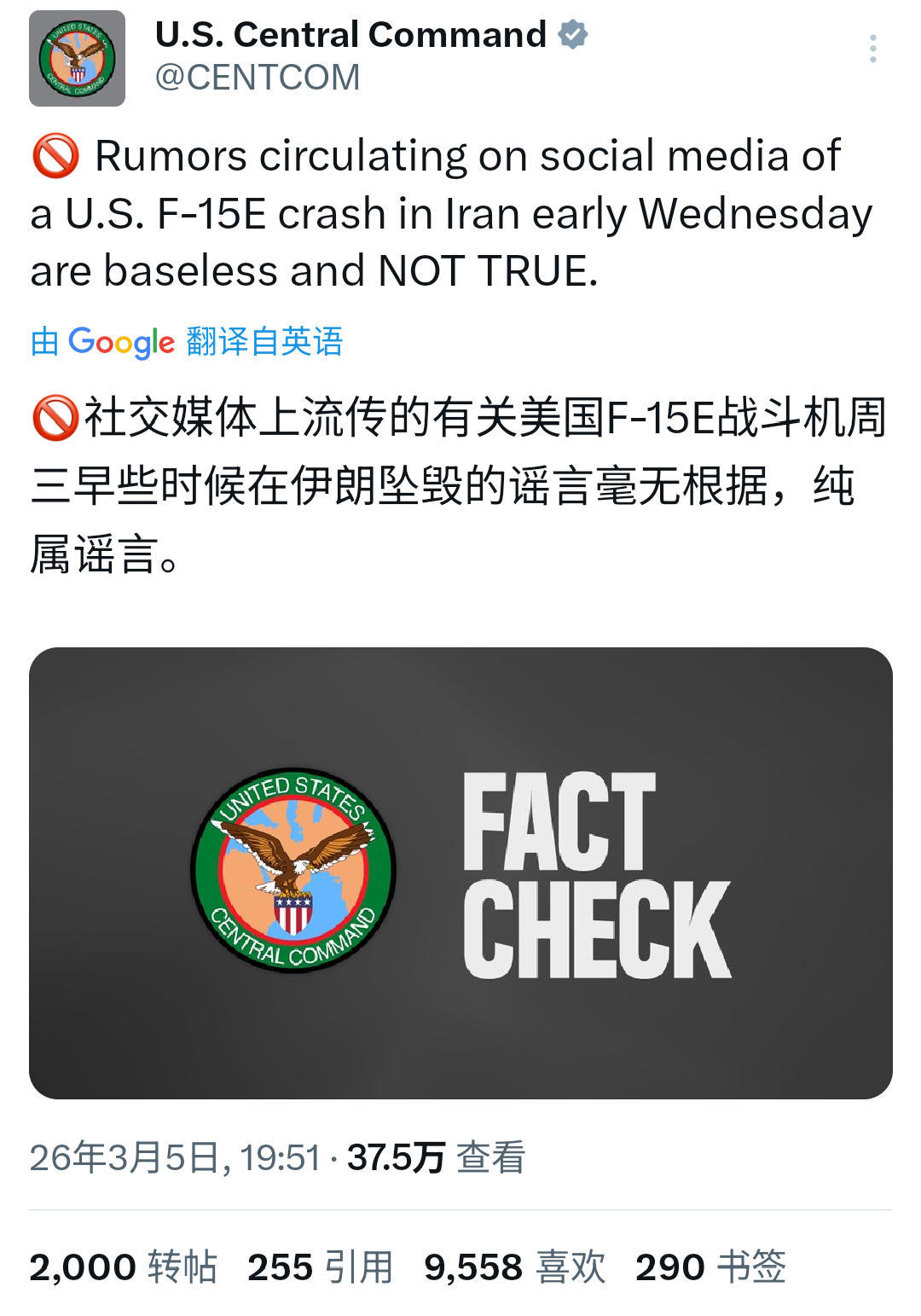 该听谁的?伊朗宣称击落一架美军F-15,美军辟谣称”毫无根据”!