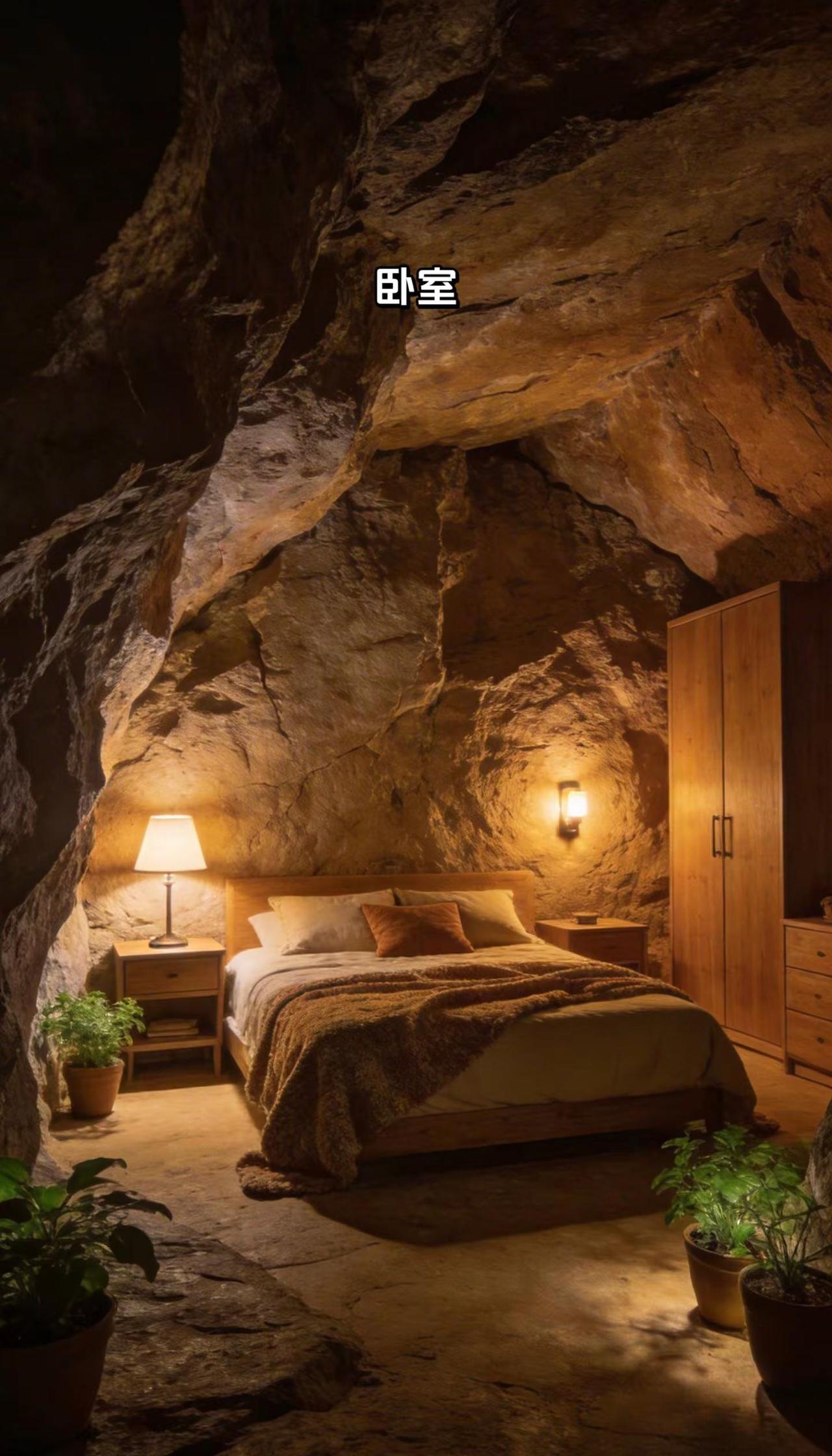 末世庇护所。末世降临,你愿不愿意躲在这个山洞避难所末世 庇护所建造 ai绘画 安全感