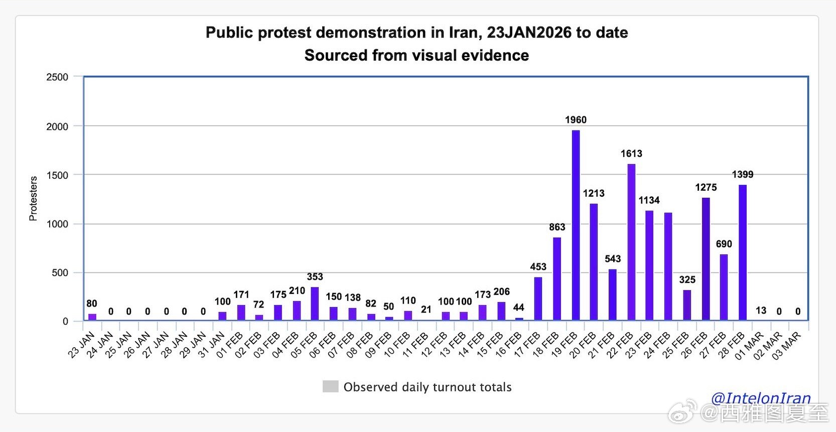 2月17-28,伊朗国内的民众抗Y活动,一直没有间断,少时每天三四百起、多时每天近两千