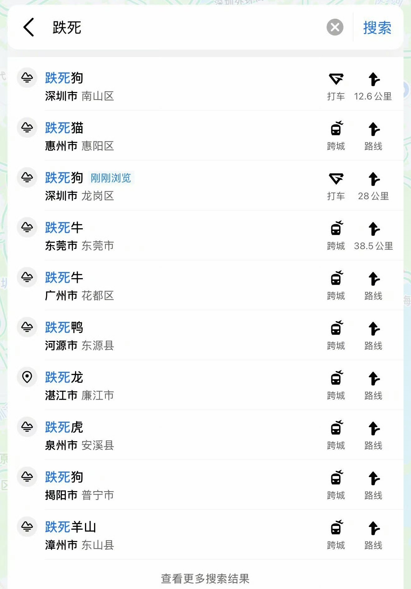 广东地名的奇葩程度,在全国也是你独一份的,还都跟动物有关,除了两个跌死狗以外,广东还有跌死马、跌死猫等奇葩地名。有网友好奇广东到底跌死多少动物?其实这是因为当地地势陡峭,用“跌死+动物”的命名方式,更加生动形象。科普满谈