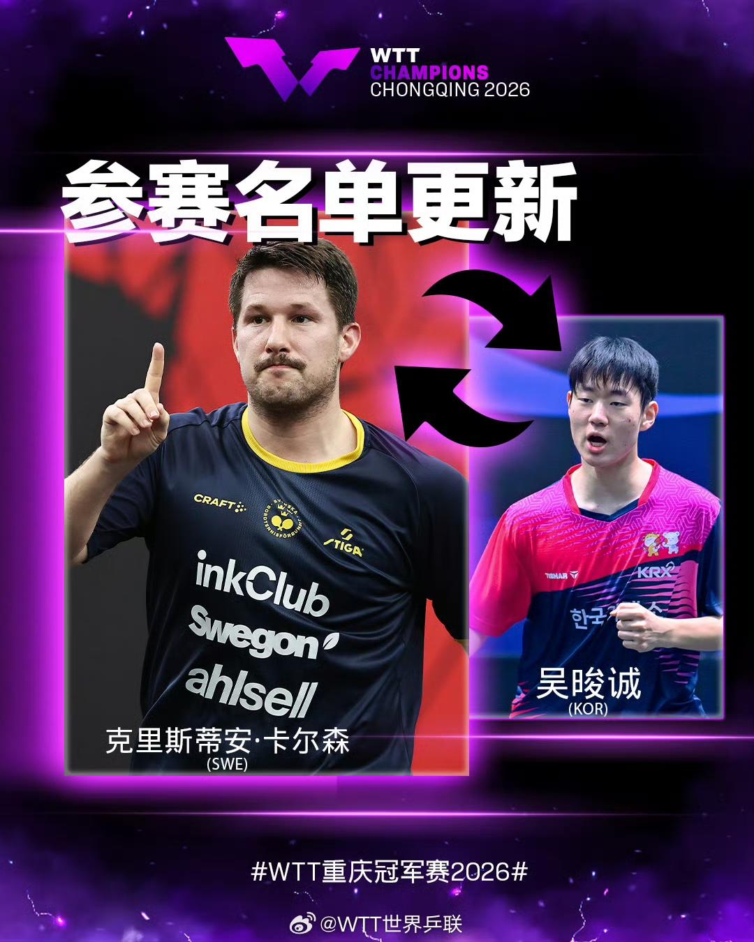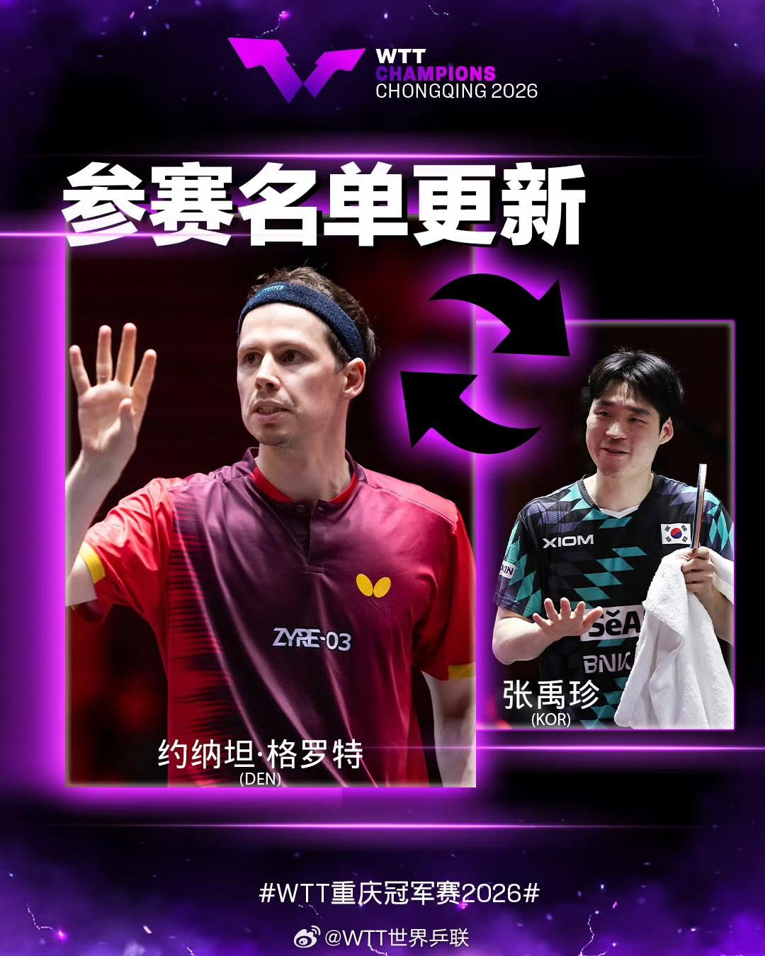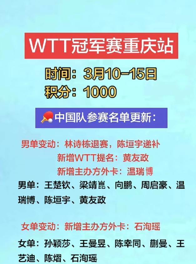 借得退赛东风,重庆冠军赛陈垣宇的绝佳试金石 重庆冠军赛林诗栋,张禹珍和吴晙诚退赛,陈垣宇,格罗特和卡尔森递补。 陈垣宇正手有球,反手也不弱,沉着冷静颇有马龙之风。新加坡大满贯赛擒达科,揍雨果,斗小莫,打得有声有色。偶尔露峥嵘叫爆冷,连续稳定超水平发挥就是实力。重庆冠军赛陈垣宇借递补东风参战,检验一下能否持续发挥? 温瑞博2026年多哈球星挑战赛闯进决赛而引人关注,温瑞博马斯喀特常规挑战赛男单夺冠让人惊艳,不想紧接着多哈支线赛和亚洲杯接连两次一轮游出局。实力虽有,起伏有点大。本站借外卡之利参战,检验一下自己。 重庆冠军赛就是试金石,看看陈垣宇和温瑞博谁更稳健?