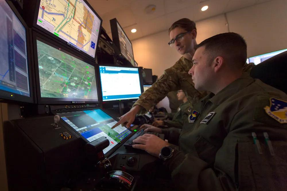 美国空军第49联队第6攻击中队训练主管在霍洛曼空军基地进行MQ-9飞行模拟,指导远程飞行学员。第49联队是MQ-9 RPA飞行员和传感器最大的正式训练单位。