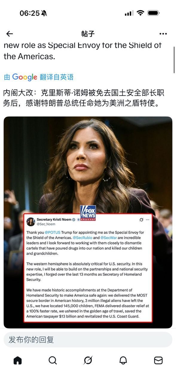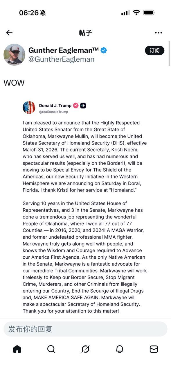 国土安全部部长易人。