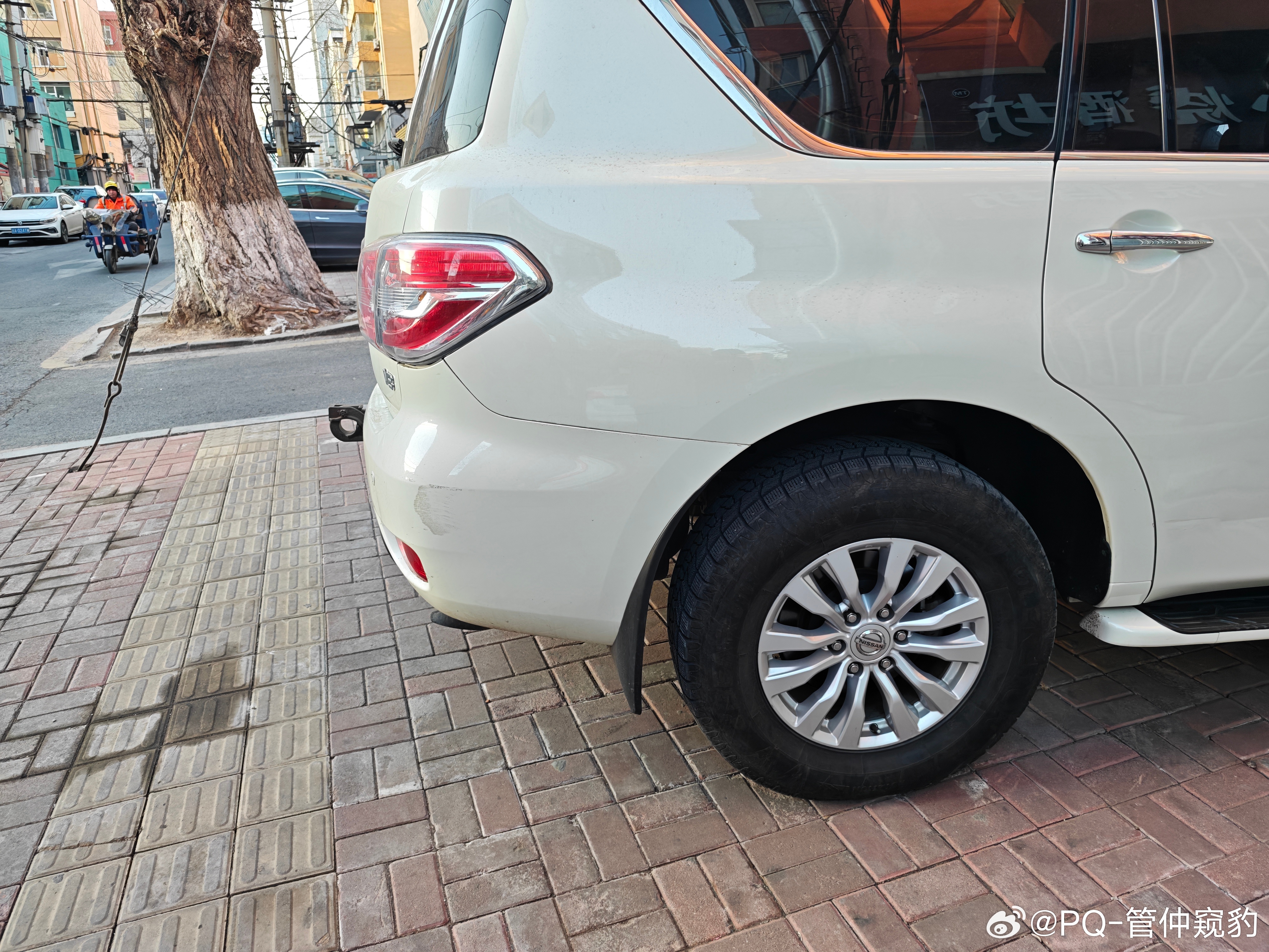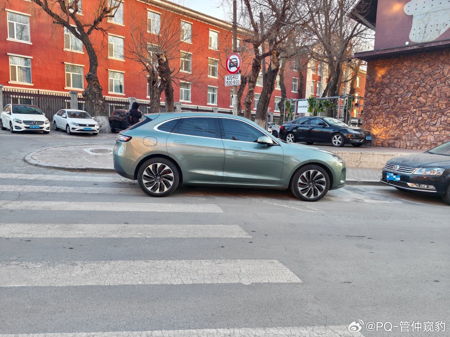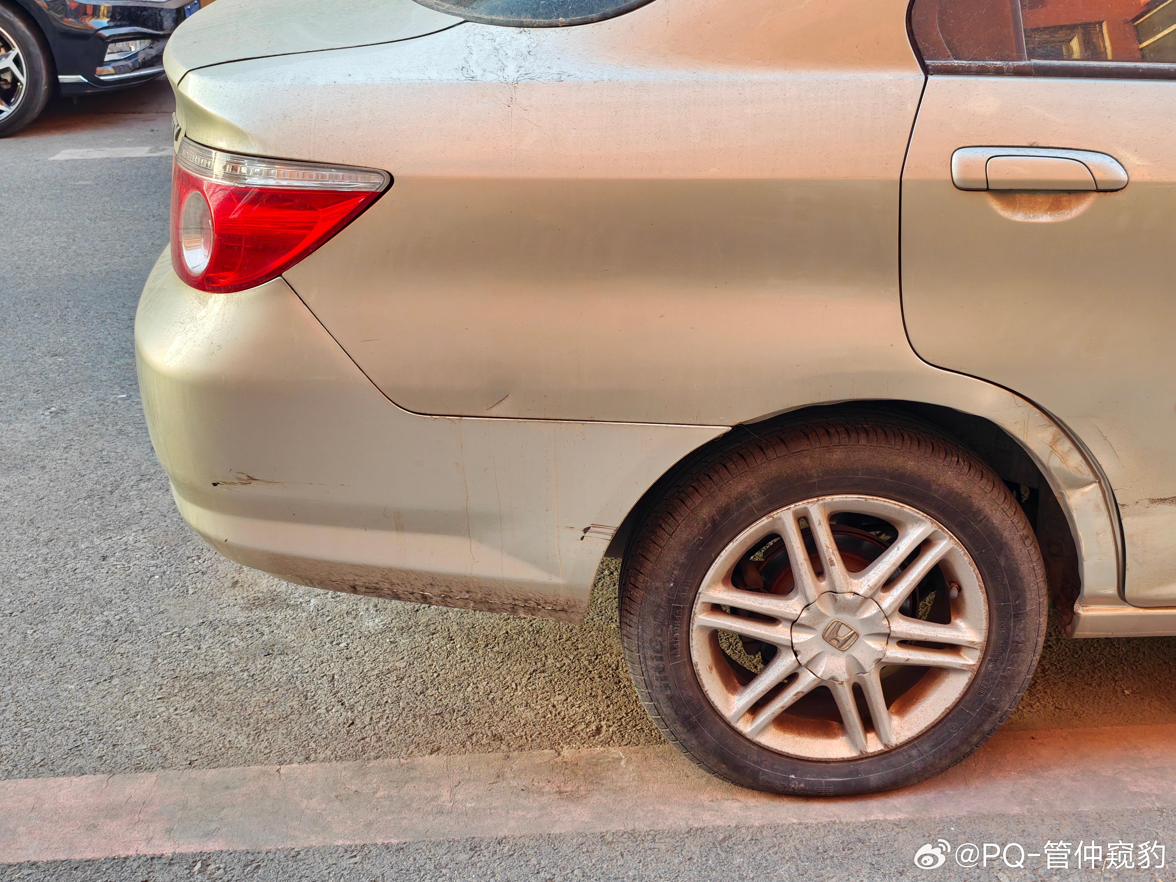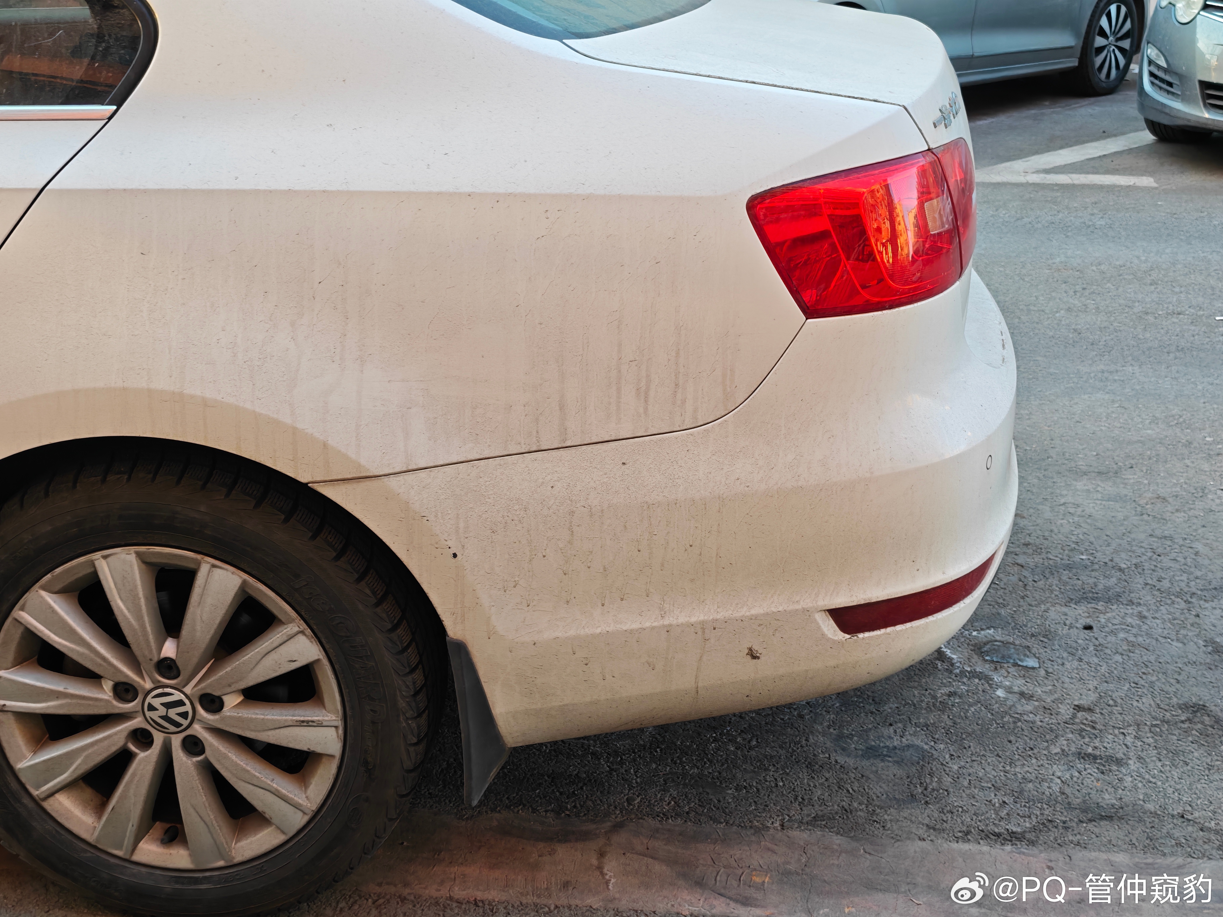 你看,这台问界M5后保险杠和侧围的分缝【拐了一下,没拐彻底】什么叫拐彻底?看看后面几台车为什么不呢?制造精度不够,保险杠末端太尖了,导致和侧围配合末端V口过大图2远观你会发现,有那么点别扭,总觉得差点意思