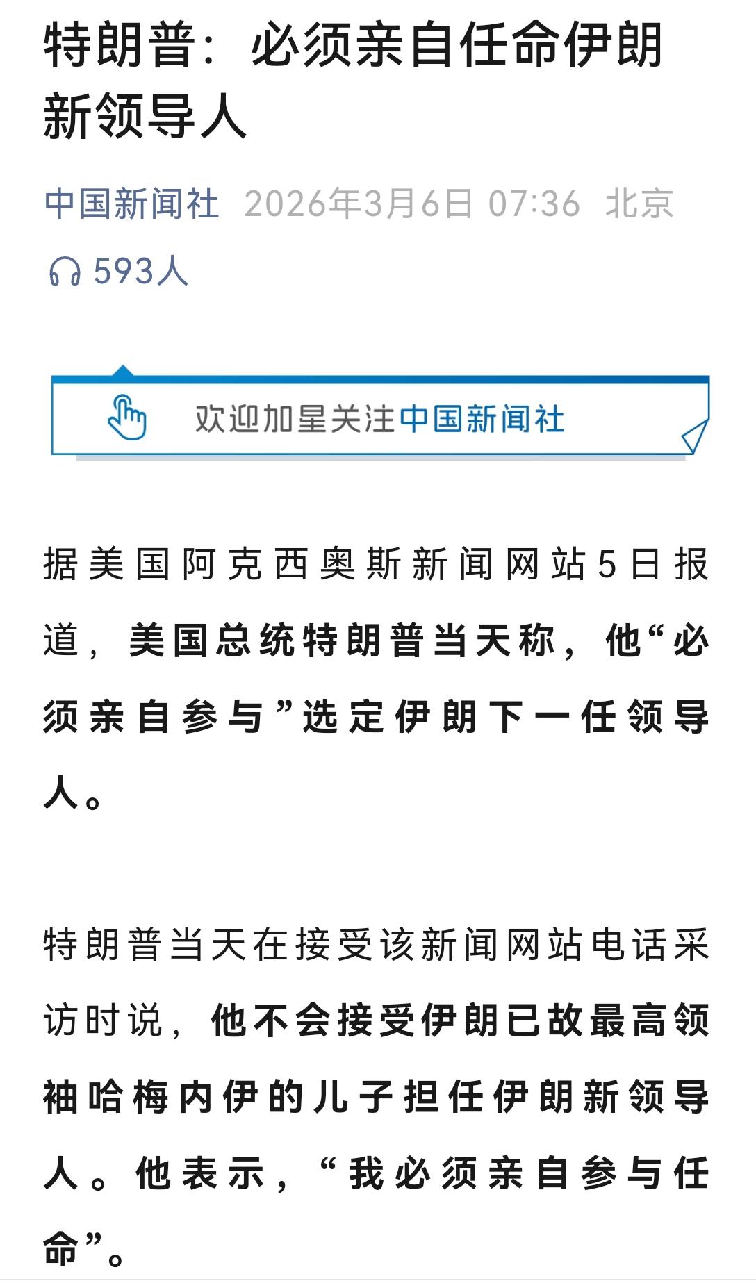川普说要“参与选定伊朗下一任领导人”[思考]这是…受了“托孤之重”?生怕“小哈”