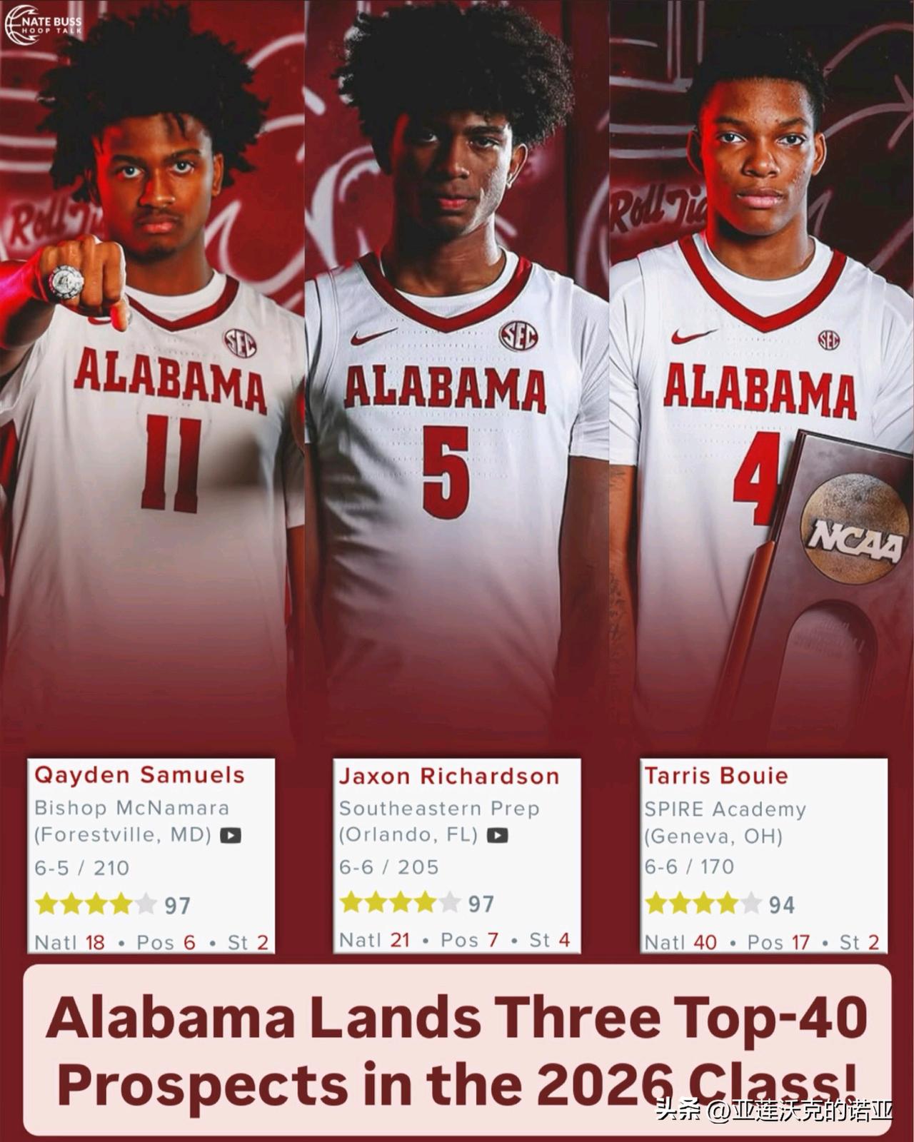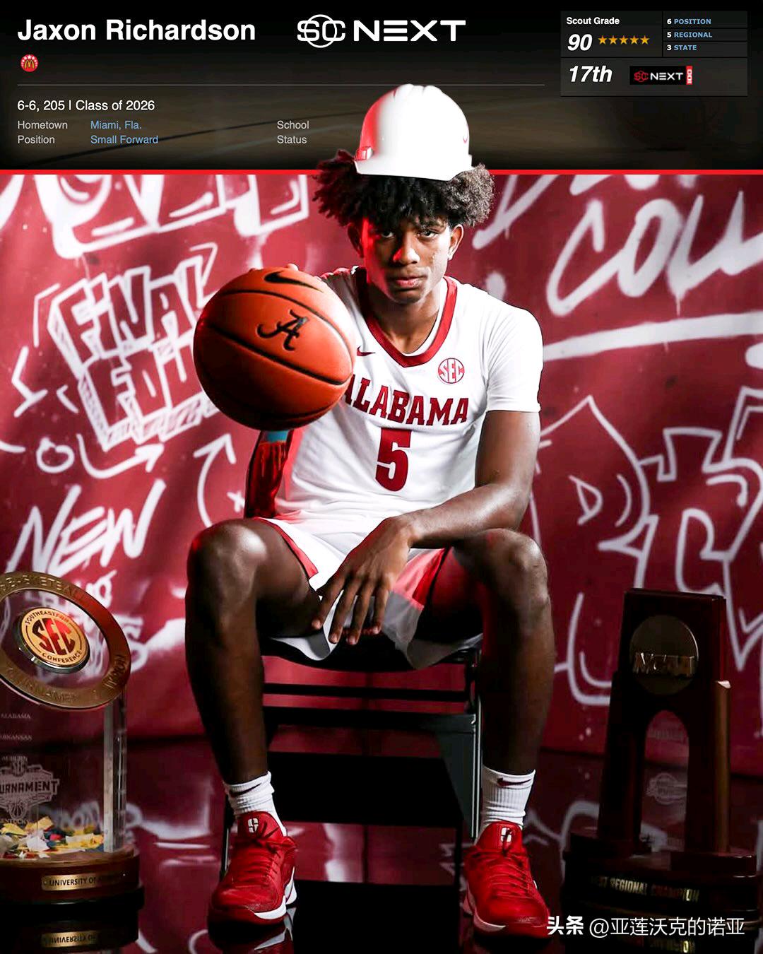 TOP20五星侧翼Jaxon Richardson宣布承诺NCAA男篮 阿拉巴马大学,最后时刻发力击败克雷顿大学,魔术新秀Jase Richardson的弟弟,前NBA球员Jason Richardson的儿子,他想要不惜一切代价帮助阿拉巴马赢球,球队这届收到的第三位加盟者,之前还有Qayden Samuels与Tarris Bouie。