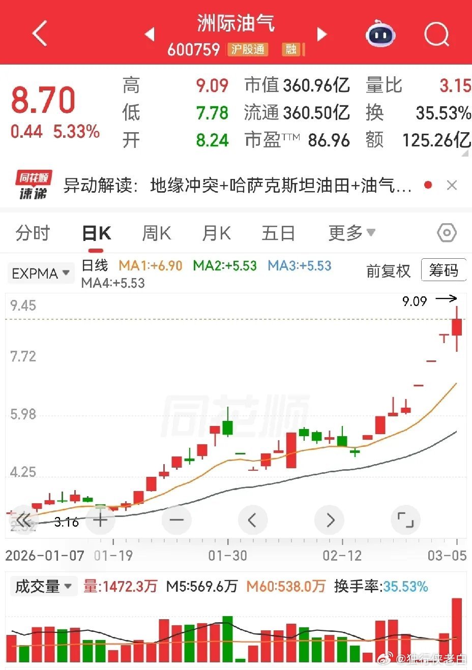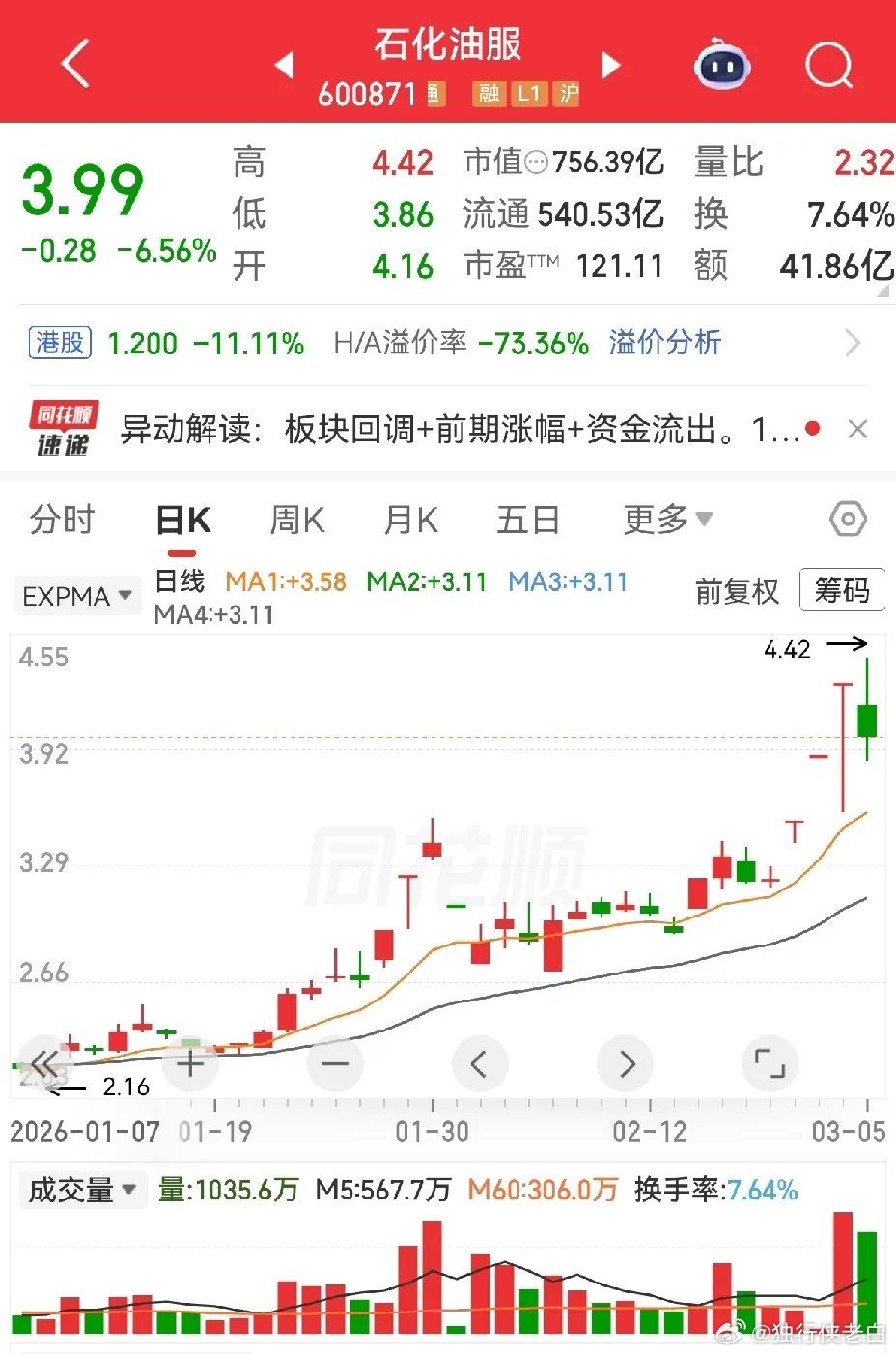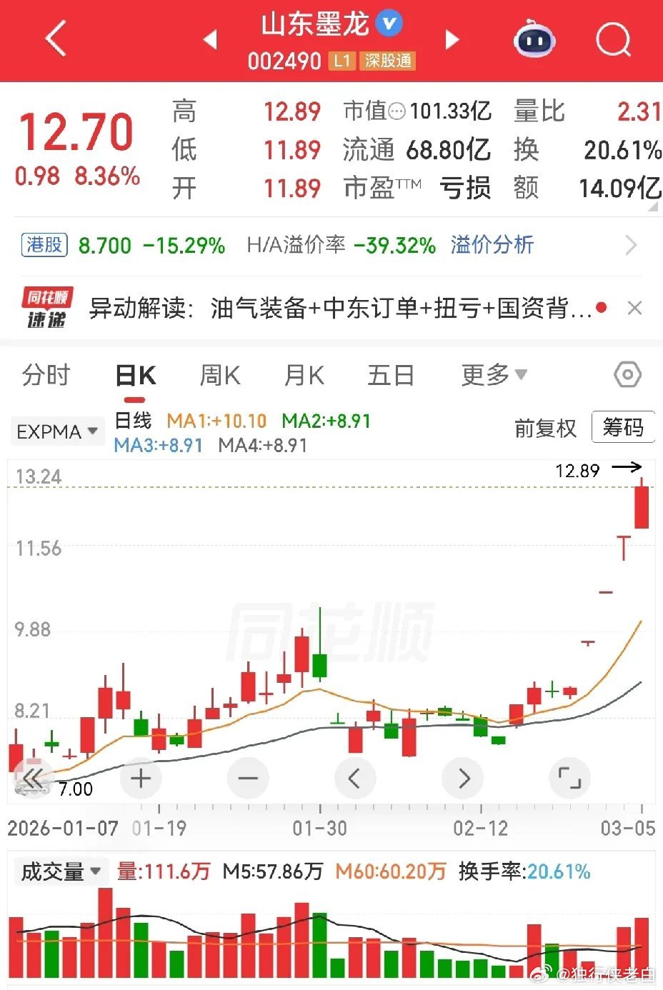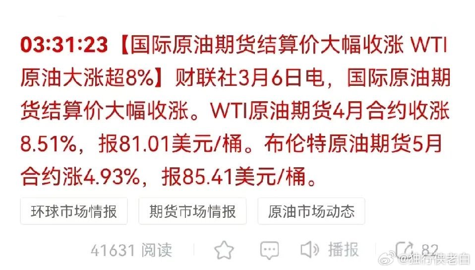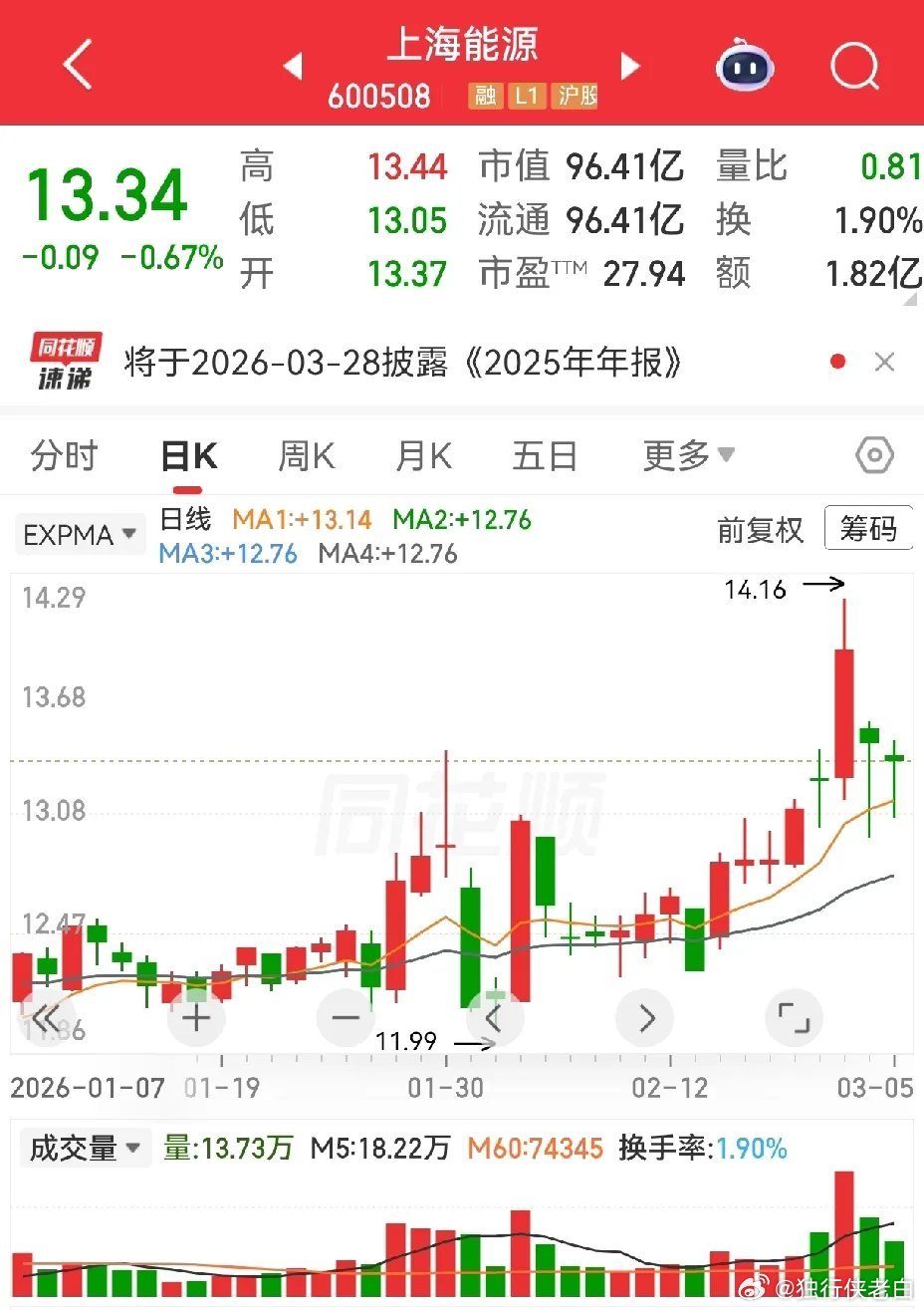 国际原油又涨了,沙特销往亚洲的原油也涨了。昨天能源油气类个股没能延续强势,大多数回调比较深,主要是受霍尔木兹海峡未封锁的消息影响,以为原油价格不会涨。现在看,涨不涨价与打不打仗关联性更大一些,只要中东乱战不停歇,油价估计较难回落。洲际油气,山东墨龙,三进四没有成功,仍然是涨的。准油股份,石化油服,跌幅比较大,水发燃气直接跌停。上海能源主要是经营煤炭,这里走了两个双针式的下影线。特别提醒:贴图欣赏,并非推荐,据此操作,风险自担。✦✦✦本人仅此一号,不主动加人,主动加人者是骗子。请提高警惕,否则损失自负。✦✦✦