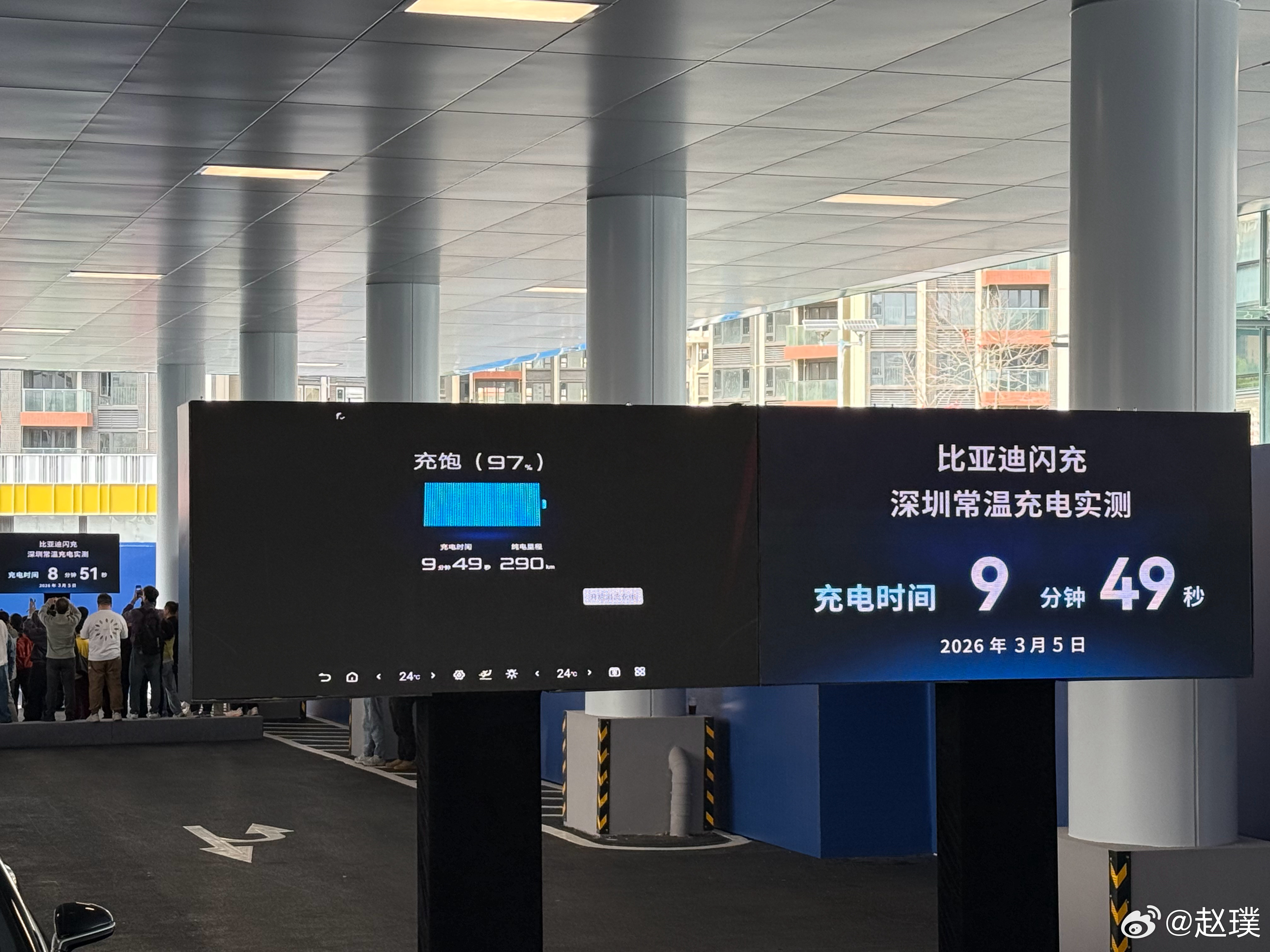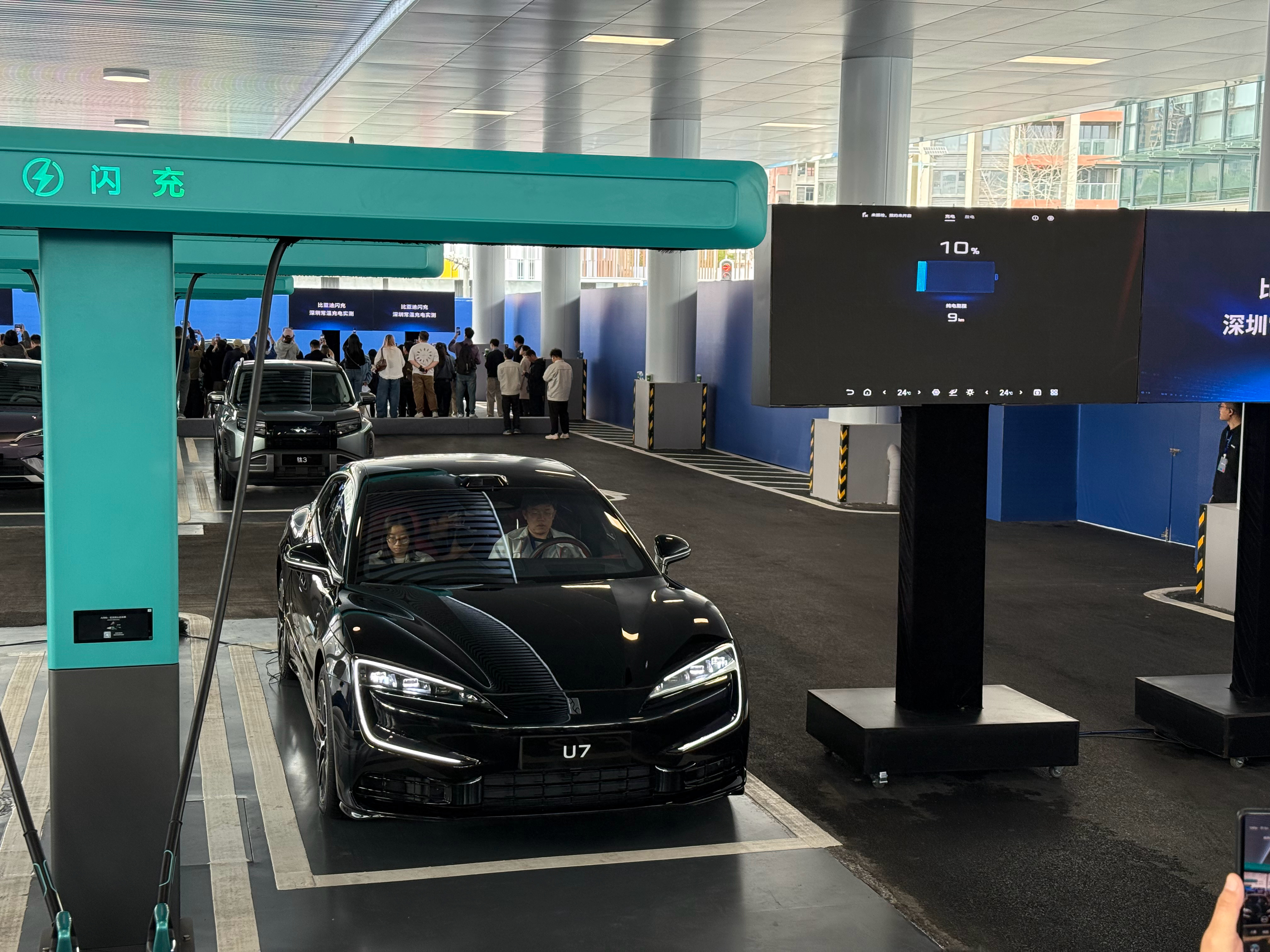 实际体验了一下全新仰望U7插混版和全新宋Ultra EV的充电速度,在深圳将近零上20度的气温下,两车都是从电量10%充到97%,仰望U7用时9分49,宋Ultra EV用时8分51。搭载二代刀片电池和闪充技术后,这个充电效率提升非常明显。比亚迪闪充充饱只用9分钟