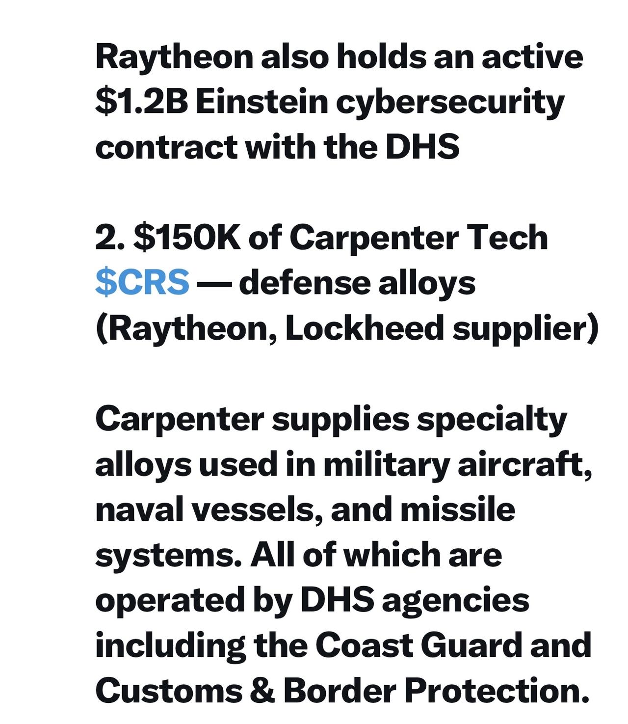 2. 15万美元的Carpenter Tech CRS ——国防合金(雷神公司、洛克希德公司的供应商)股票