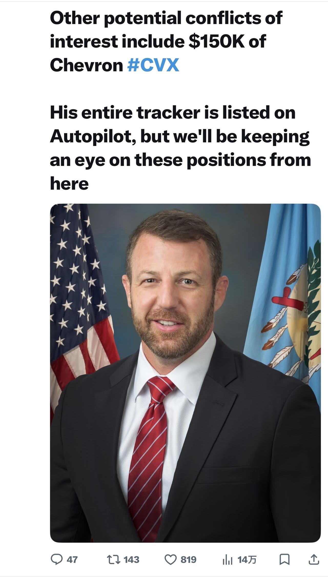 其他潜在的利益冲突包括雪佛龙公司CVX的 15 万美元