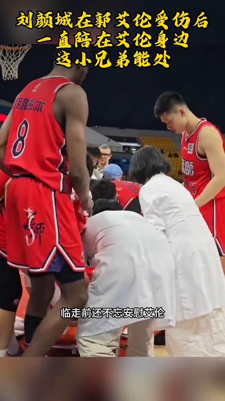 刘颜城在郭艾伦受伤后一直陪在艾伦身边,这小兄弟能处。 郭艾伦受伤倒地,表情非常痛苦,用力的捶打着地板,甚至都哭了。刘颜诚一直陪在身边,紧紧攥着艾伦的手,给予艾伦安慰鼓励,眼里流露着担心。担架车来了,赶忙上前一把把担架车拉了过来,随后一起和队友扶起艾伦到担架车上,临走前还不忘安慰艾伦。 看得出来在广州队里刘颜城真的很敬祝艾伦,大家一起祝福艾伦,希望艾伦早日回归他热爱的球场。