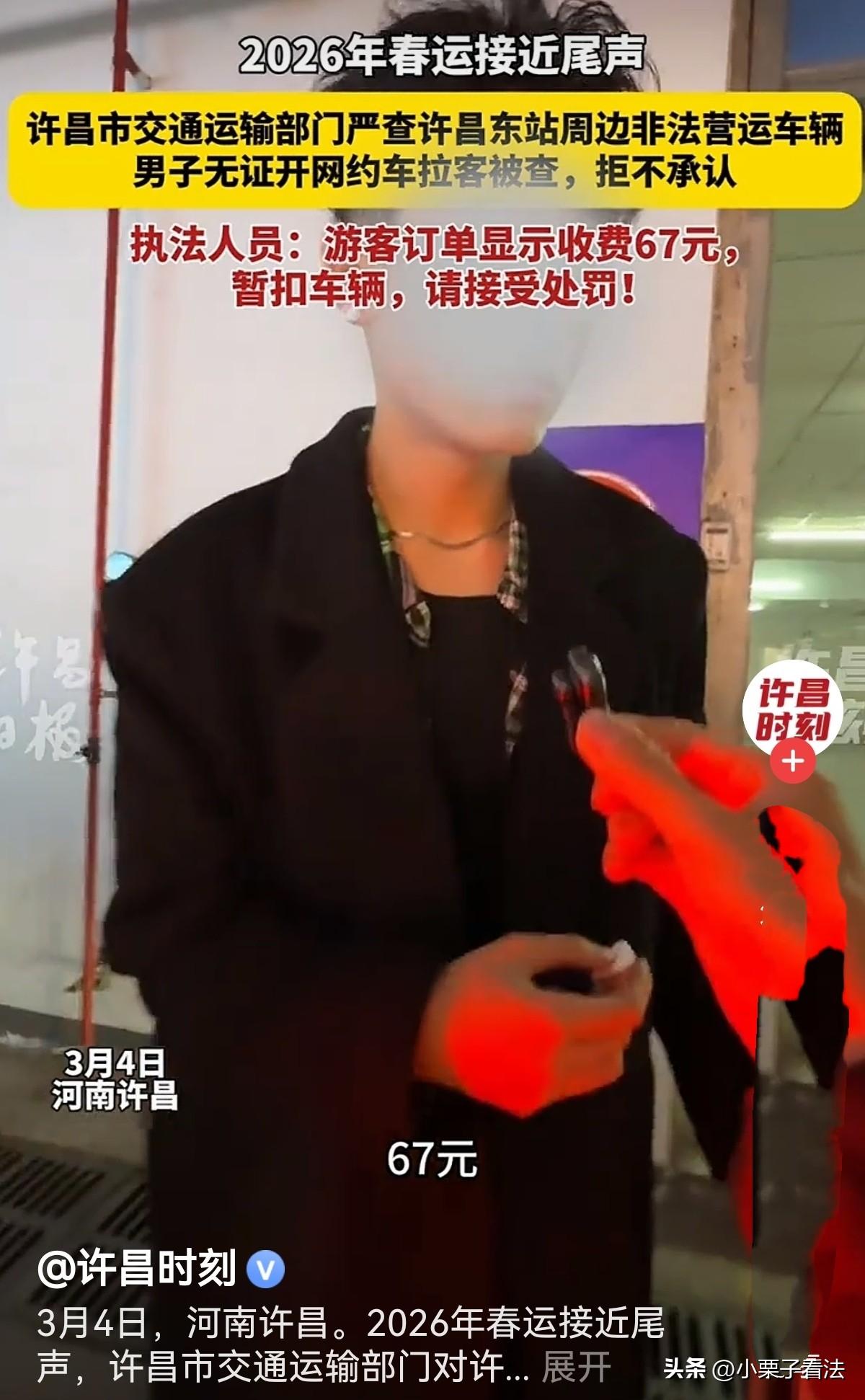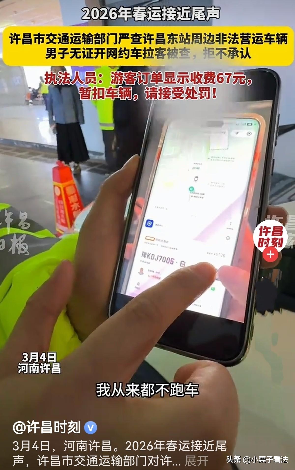 “老百 姓也难啊!”河南许昌,男子打了一网约车,车刚到还未上车,执法人员就将网约车拦下要检查运营证和从业资格证,网约车司机当场就懵,赶紧摆着手说:他从来不跑车!执法人员看向男子:这是你叫的车对吗?男子说:对啊!刚下的单,67元钱!这下证据确凿,司机无以狡辩,接下来执法人员的操作,司机彻底懵 逼了! 春运即将结束,高铁站依旧客流不断,提着大包小包的旅客匆匆赶路,不少人刚出站就拿出手机预约网约车。 一名男子驾车刚停在乘客面前,还没等乘客开门上车,就被交通执法人员拦了下来,一场尴尬又无奈的现场执法就此展开。 “请出示你的网约车驾驶员从业资格证和车辆道路运输证。”执法人员语气平静地说道。 男子一听这话,脸色瞬间变了,眼神慌乱地四处躲闪,连忙摆着手解释:我从来不跑车,今天就是开车路过,真没拉活。 他努力装出淡定的样子,试图把自己伪装成普通私家车车主,心里还抱着一丝侥幸,觉得只要不承认,就能蒙混过关。 可他没想到,乘客就站在旁边,执法人员当即转身询问旅客:这是你叫的车,对吗? 乘客毫不犹豫地点头:对啊,就是这辆,我刚下的单。 说完还主动亮出手机订单,屏幕上清晰显示着67元的车费,车辆信息与男子驾驶的车辆完全一致。 铁证摆在眼前,男子瞬间僵在原地,张着嘴半天说不出一句话,刚才的底气荡然无存。 他心里又慌又悔,本以为平台能派单就是合规,想着趁空闲跑一单赚点零花钱,谁知道第一单就被抓了现行,所有的侥幸瞬间化为泡影。 因无法提供任何营运相关的合法证件,执法人员当场判定其涉嫌非法营运,当场开具了扣车凭证。 你的车辆先暂扣,后续带齐材料到单位接受处理。听到这话,男子彻底傻眼! 他怎么也想不到,一笔还没赚到手里的67元,竟要面临扣车和罚款的后果,满心的委屈和自责涌了上来,却又无从辩驳。 这件事很快引发网友热议,大家的观点吵成了一片。 有人直言,执法人员不应该罚车主,应该罚平台,没有营运资格应该不能注册,没有资质平台敢通过谁在违法,谁在纵容违法? 如平台严格审核资质,不给无证司机派单,根本不会出现这种情况!你得讲理! 有人心疼司机的处境,普通人跑车都是为了养家糊口,一次处罚很可能成为压垮生活的最后一根稻草。 事实上,这起事件暴露了网约车行业长期存在的监管漏洞。 《网络预约出租汽车经营服务管理暂行办法》第14条:从事网约车服务的驾驶员,应当取得《网络预约出租汽车驾驶员证》 第12条、第13条:拟从事网约车经营的车辆,应符合条件并取得《网络预约出租汽车运输证》,双证缺一不可 。 《网络预约出租汽车经营服务管理暂行办法》第18条:网约车平台公司应当保证提供服务的驾驶员、车辆具备合法资质,不得向未取得合法资质的车辆、驾驶员派单。 根据规定,网约车必须驾驶员、车辆“双证齐全”才能上路营运。 但不少平台为了保证运力,刻意放宽审核标准,司机只需上传身份证、驾驶证就能注册接单,完全不核查营运资质。 平台方还以“合规化需要过程”为借口,默许大量无证车辆上路。 这也形成了一个荒唐的怪圈:平台放宽审核赚抽成,司机以为平台认可就是合法。 可一旦被查,所有责任和罚款都由司机独自承担,平台却毫发无损,既不担责也不赔偿。 从情理上说,这名司机确实满是委屈。注册时没人提醒需要双证,接单时平台也未制止,突然被查扣罚款,任谁都难以接受。 他只是想赚点辛苦钱,并非恶意宰客的黑车司机。 但从法律角度来讲,无证营运触碰了安全红线,无资质的车辆没有经过专业检测,驾驶员也未接受背景审核,一旦发生事故,乘客的安全根本没有保障。 更让人反思的是平台的责任缺失。作为派方和受益方,平台靠着司机接单赚取抽成,却未尽到最基本的审核义务。 尽管多地交通部门已约谈平台,要求停止向不合规车辆派单,但仍有平台为了利益视而不见。 按照相关规定,无证从事网约车营运,司机将面临3000元至10000元的罚款,可处罚往往只针对司机,很少追究平台的责任。 不少网友呼吁,监管不能只盯着基层司机,更要约束平台,让盈利方承担起应尽的法律责任。 对此您怎么看?
