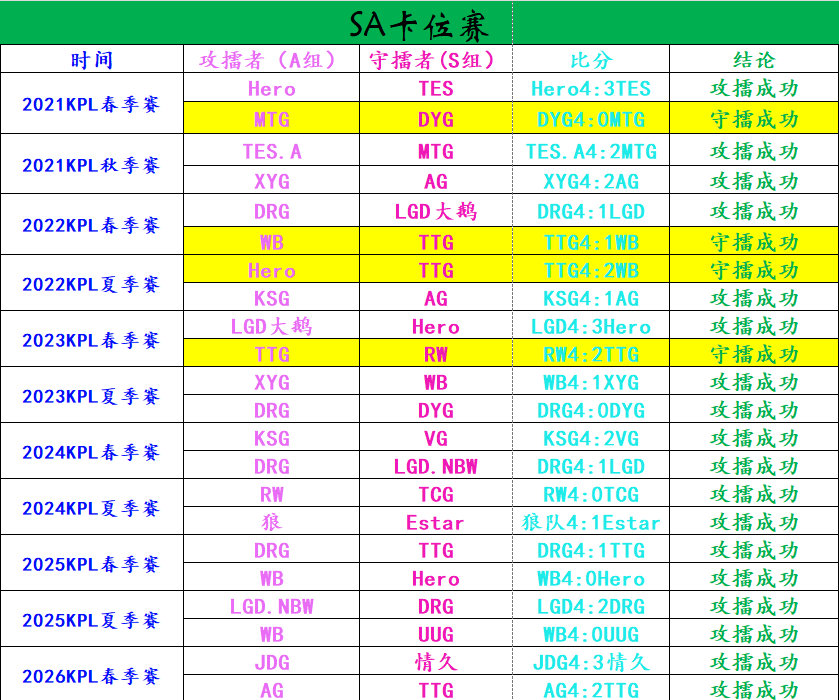 瓜友速报 自21年推出SAB分组赛制,历届SA卡位赛和AB卡位赛胜负情况