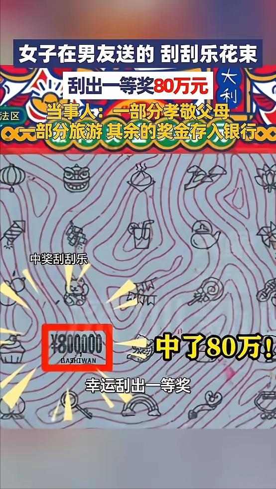 “这就是命啊!”近日,广东佛山,一女子生日时,收到男朋友为她准备的刮刮乐花束,没想到竟刮出80万一等奖!女子十分开心,决定拿一部分奖金孝敬父母,一部分旅游,其余的存进银行,作为未来生活的保障!网友:羡慕哭了! 不同于很多情侣只在特殊日子走个过场,李女士和男友一直很注重生活里的仪式感,相处多年来,每逢生日、纪念日这样的重要时刻,两人都会精心为对方准备礼物,这份长久的用心,也让他们的感情愈发稳固。 这次李女士生日,男友不想再送常规的鲜花、首饰,总想给她一个不一样的惊喜,思来想去,最终决定定制一束刮刮乐玫瑰花束。 这款花束最近在年轻人中十分流行,既有鲜花的浪漫,又有刮刮乐的未知惊喜,价格也不算昂贵,男友当时的想法很简单,只是想让李女士在生日当天图个开心,压根没指望能中什么大奖,纯粹是一份心意的表达。 生日当天,李女士收到这束特别的花束时,眼睛瞬间亮了,脸上满是感动,当场就迫不及待地拆开包装,一张张开始刮奖。 起初,刮开的几张都是小额奖金,虽然金额不多,但李女士已经笑得合不拢嘴,觉得自己已经很幸运了,能在生日当天收获这样的小惊喜,就已经足够。 可谁也没想到,当她刮到最后一张刮刮乐时,原本带着笑意的表情瞬间僵住,眼睛死死盯着刮开的数字,半天没反应过来——屏幕上清晰显示的,竟是80万一等奖。 身边的男友也凑了过来,看到数字的那一刻,同样满脸难以置信,两人反复刮了好几遍,又仔细核对了奖项说明,确认无误后,压抑不住的喜悦才瞬间爆发,李女士甚至激动得红了眼眶,连说话都有些语无伦次。 要知道,刮刮乐的中奖概率本就不高,整体中奖概率大概在1:4.5左右,其中小额奖金概率较高,而像80万这样的一等奖,概率低到几乎可以忽略,堪比“天选幸运儿”。 李女士没有被80万大奖冲昏头脑,很快冷静下来,有条不紊地规划好了这笔奖金的用途。 她决定拿出一部分奖金孝敬父母,回报多年来的养育之恩,这是她拿到奖金后第一个想到的事情; 再拿出一部分,来一场说走就走的旅游,去看看外面的世界,满足自己多年来的小愿望; 剩下的所有奖金,全部存入银行,作为未来生活的保障,为自己和男友的未来筑牢底气。 这份清醒和务实,比中奖本身更让人动容,也让这场幸运,多了一份温暖的底色。 事件曝光后,迅速在网络上引发热议,网友们的羡慕几乎要溢出屏幕。 有人留言说,这才是天花板级别的生日礼物,爱情和财运双丰收,简直是人生赢家; 也有网友调侃,自己也要给对象安排同款刮刮乐花束,沾沾这份好运气; 还有不少网友理性发声,称赞李女士的三观,认为意外之财最考验人心,她的克制和规划,才是真正的难得。 与此同时,笔者也注意到,不少网友开始盲目跟风购买刮刮乐,希望能复制李女士的好运。 这里也需要提醒大家,购彩的本质是娱乐,而非投机,中国福利彩票一直倡导“多人少买、寓募于乐、量力而行、理性购彩”的理念,刮刮乐本该是生活中的小乐趣,千万不要过度投入金钱和精力,避免得不偿失。 其实,李女士的幸运,从来都不是偶然。 男友的用心付出,是爱情最美好的样子; 李女士的清醒懂事、懂得感恩,是她配得上这份好运的底气。 这场意外的大奖,是生活赠予的温柔彩蛋,而李女士的选择,却让这份彩蛋,变成了长久的幸福。 我们总在期待不期而遇的幸运,总在盼着生活的惊喜,却忘了,真正的幸运,从来都不是凭空降临。 它藏在身边人的用心陪伴里,藏在自己的清醒克制里,藏在懂得感恩、珍惜当下的每一个瞬间里。