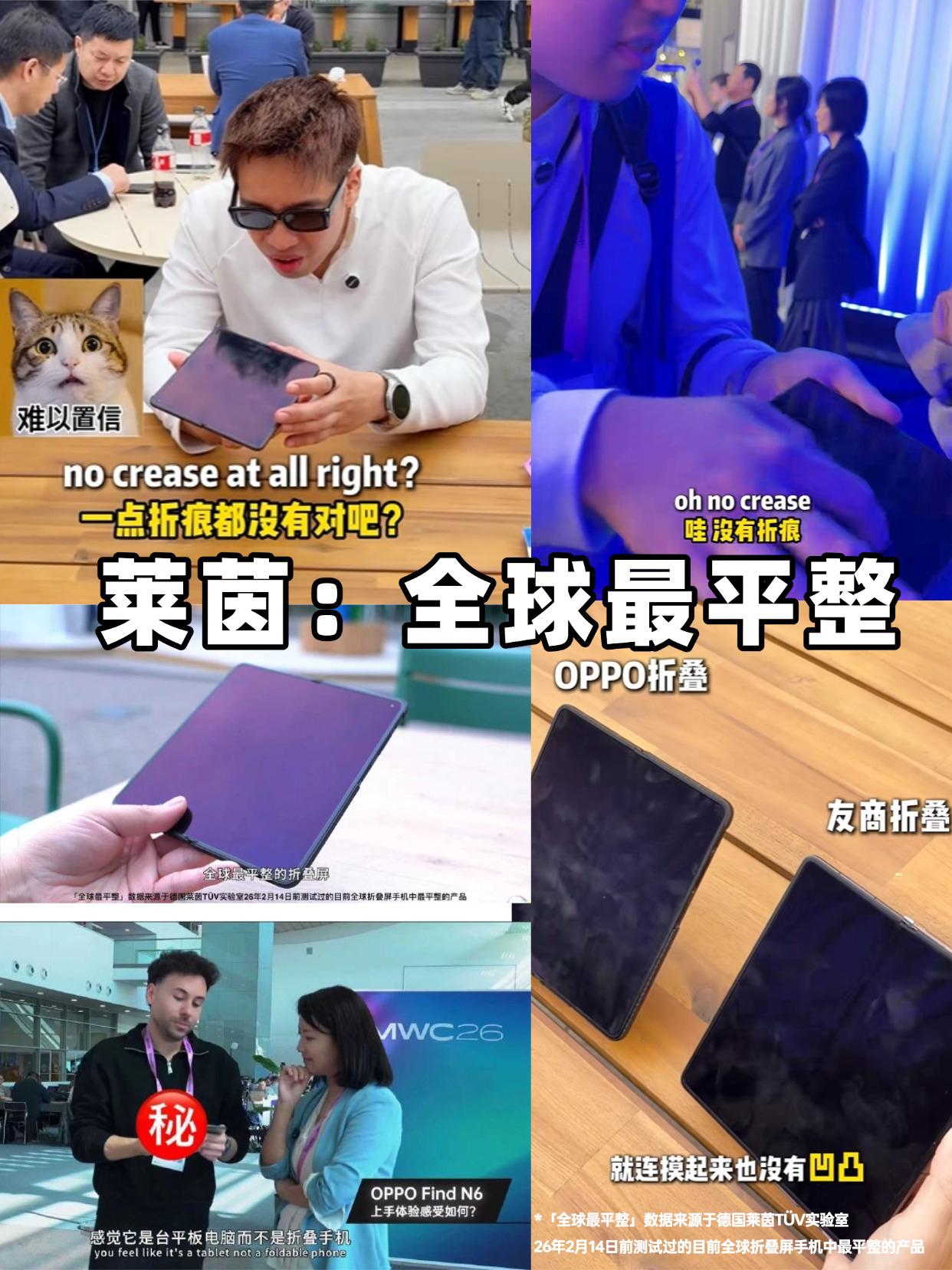 MWC折叠屏PK,老外对OPPO Find N6的态度很真实 刚刷到MWC 2026前线的对比视频,我真的看麻了! 以前总觉得国际大厂是标杆,结果这波国产厂商简直是去“砸场子”的。 尤其是被各种外媒围观的OPPO Find N6, 现场直接拿来和谷歌还有其他国产新机的折叠屏对比 OPPO在折痕控制这一块简直赢麻了,屏幕平得就像一面镜子!! 莱茵测过的「全球最平整折叠屏」的含金量具象化了!! 这也难怪很多外媒看到Find N6的第一眼都很惊讶, 一度直呼看不见折痕! 另外,这次Find N6据说会推出三款新配色,特别是其中橙色款时尚高级 还很有辨识度,到时候真机质感应该也会很不错 现在全球存储物料都在暴涨,苹果那个还没影的折叠屏据说要卖到2万块! 虽然传闻Find N6也会涨个两千上下,但对比同行,和它这个折痕控制表现, 感觉还是挺香的。目前新品已经开启预约,在这种普涨大环境下,新机和老款都要涨价 第一波首发入手感觉反而更香,何况Find N6目前参与预约的权益还蛮有诚意。 OPPOFindN6 MWC2026 折叠屏手机 视觉无折痕 周意保 国产科技之光 我的数码生活 数码换新建议