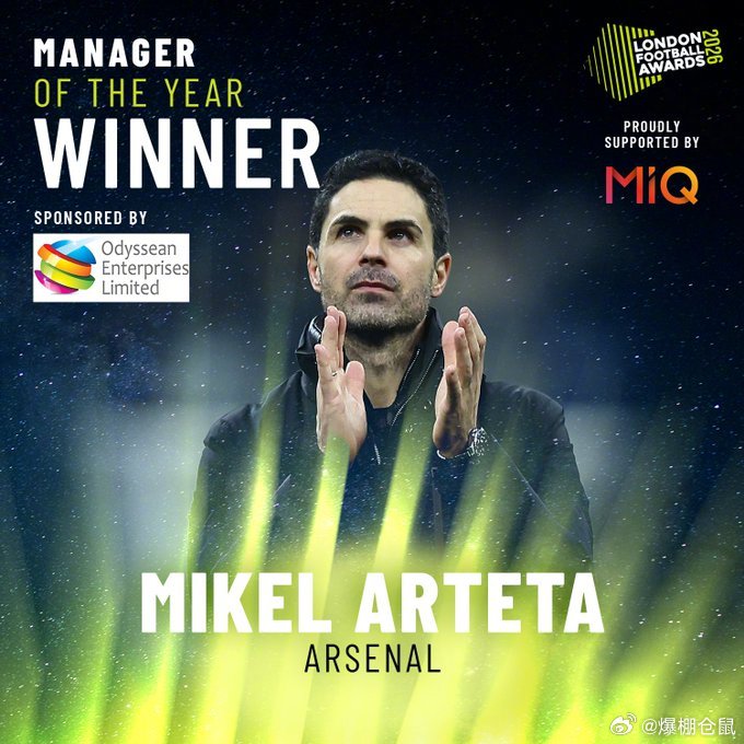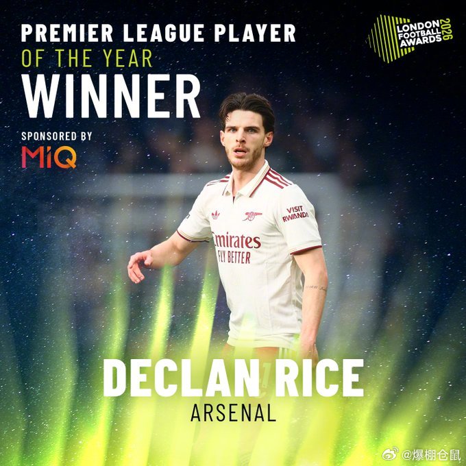 【官方】阿森纳的赖斯获得伦敦足球奖的年度最佳球员,阿森纳主教练阿尔特塔获得英超年度最佳主教练,切尔西的埃斯特旺获得年度最佳年轻球员。英超