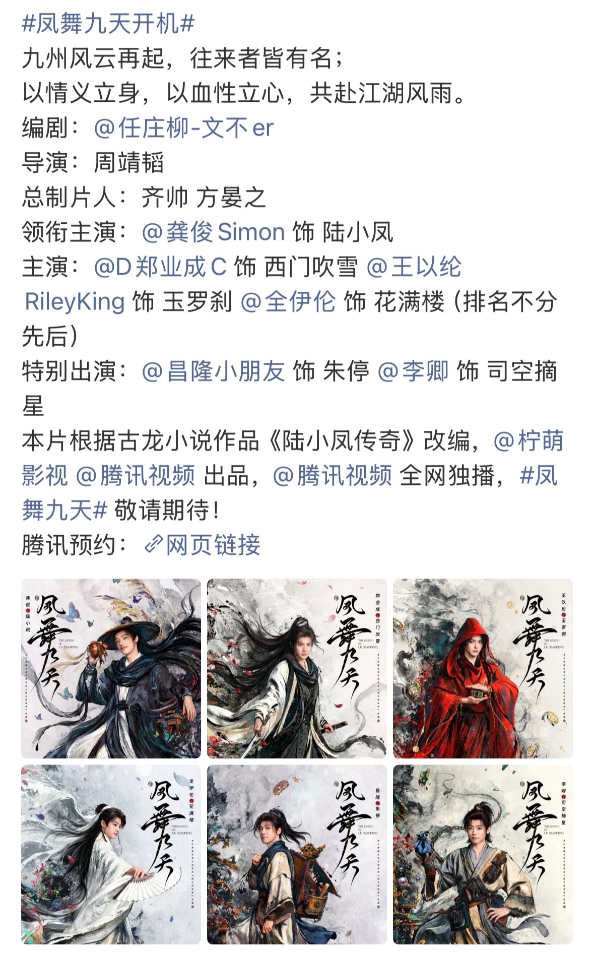 凤舞九天今天官宣了龚俊连进三个男频大组,班底也是一部比一部强这部阵容码得真不错,