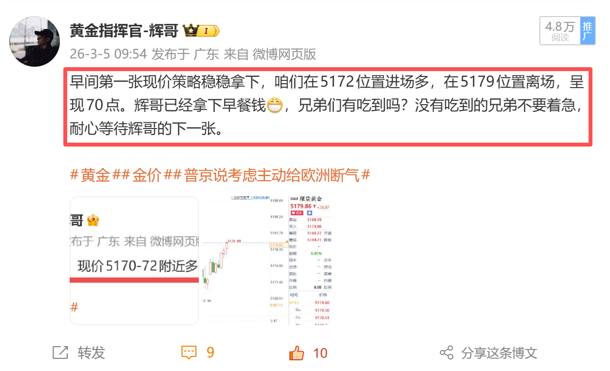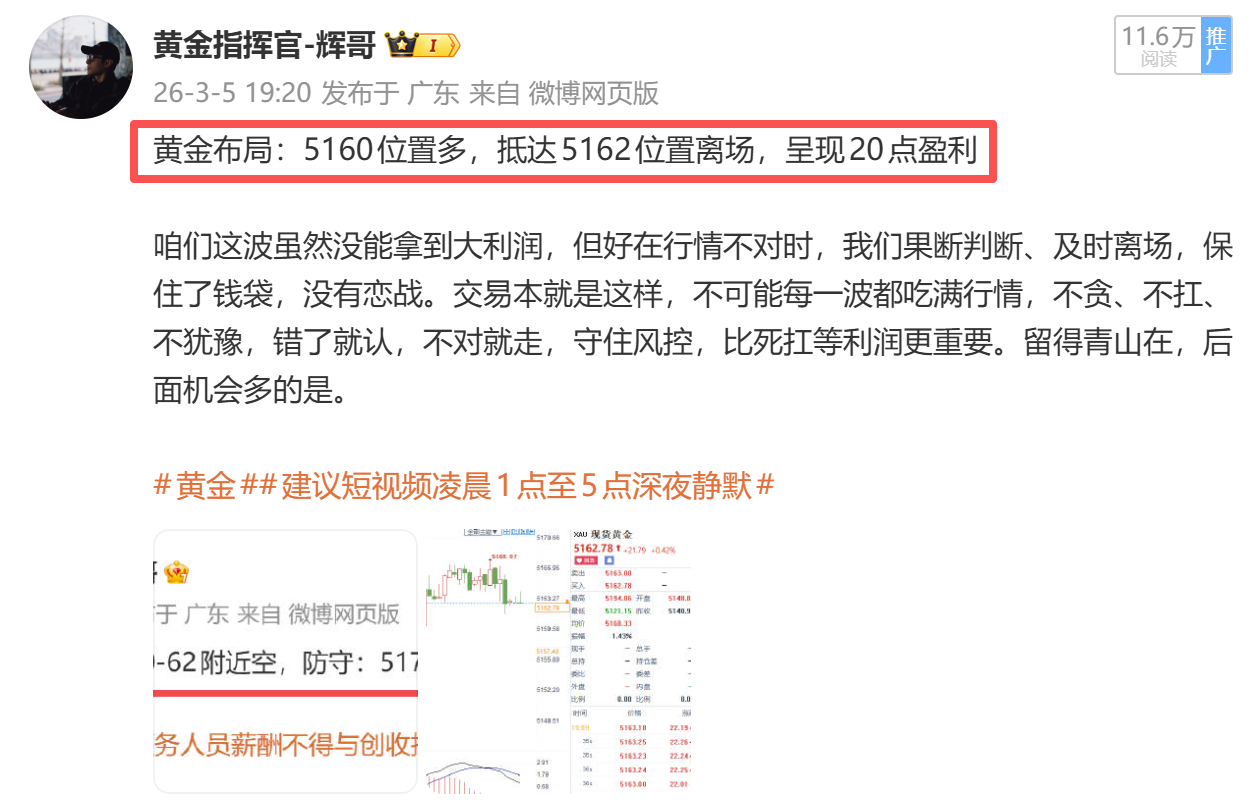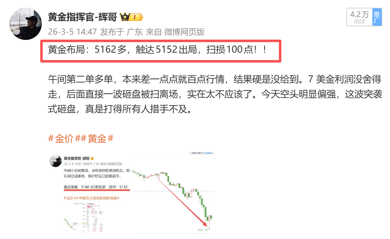 昨天布局 4 单,第二单冲百点利润时遇突发砸盘被扫损。在辉哥的战场,不比谁预判最神,只比谁能守住利润、落袋为安。想每一单完美无瑕?这里是真金白银的战场,不是童话。取关随意,我不哄人、不挽留、不伺候。不养玻璃心,不收赌徒,不带只会抱怨的巨婴。辉哥只渡敢执行、守纪律、绝对信任的人。马年行情才刚启动,胜不骄败不馁,稳扎稳打。只要跟紧节奏,该赚的,一分都少不了你。金价被医生咆哮塞200元母亲婉拒捐款