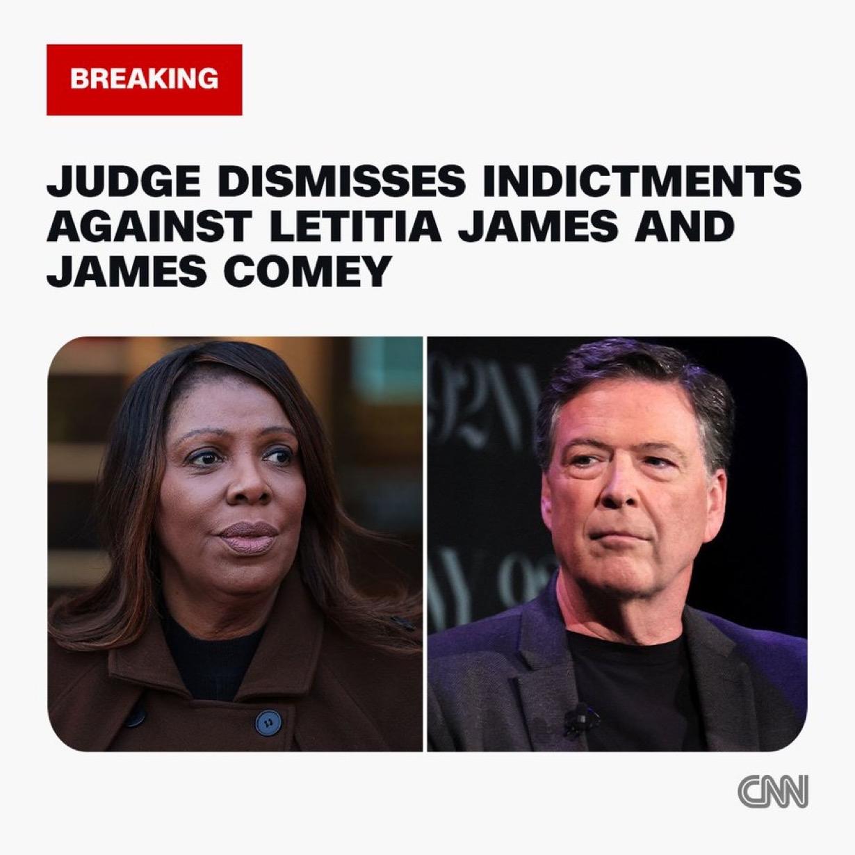 此前,法官驳回了针对特朗普政治对手詹姆斯·科米和莱蒂西亚·詹姆斯的案件,理由是林赛·哈利根的任命不合法。