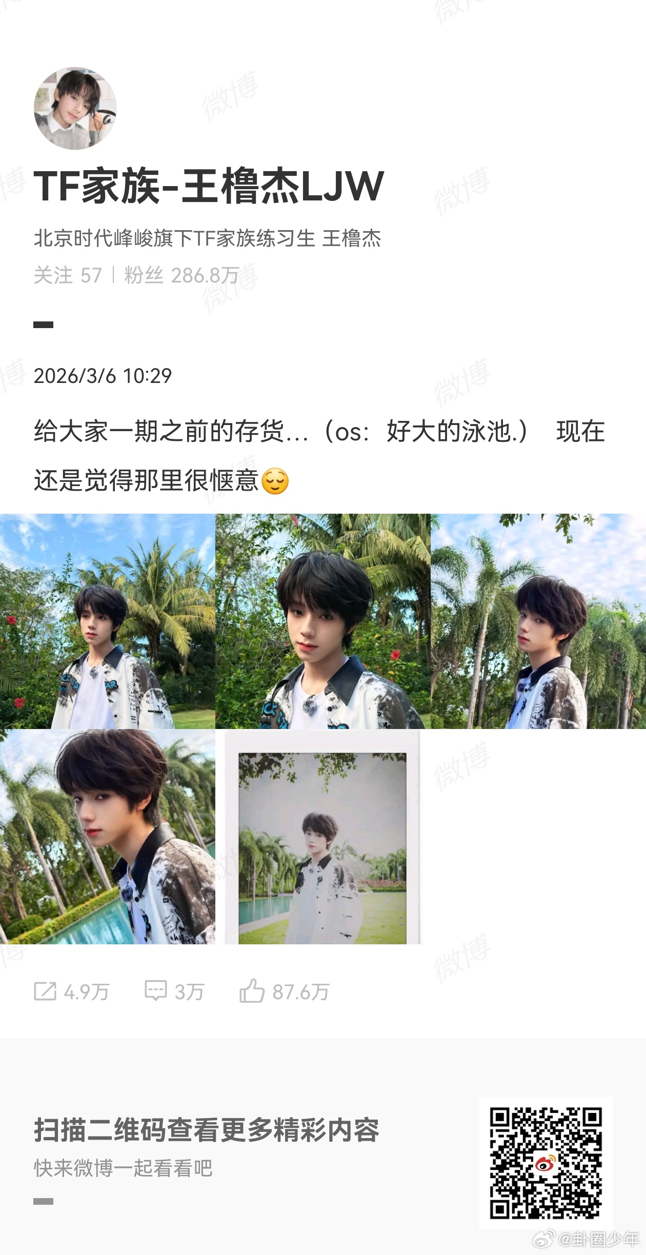 王橹杰的存货王橹杰泳池自拍阳光少年氛围感绝了,清爽帅气藏不住,这样的存货请多多放