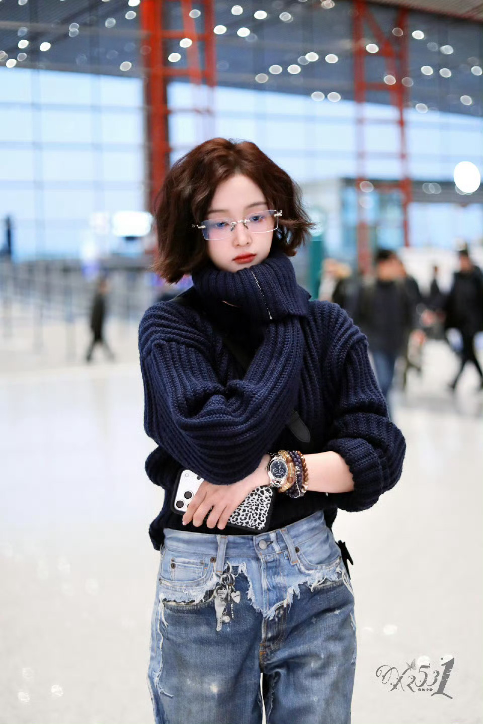 短发造型真的太惊艳了!深蓝色粗针织毛衣配浅色牛仔裤,简约又有个性。短发衬得她五官更精致,还多了一份干练时尚感,期待她更多新风格!吴宣仪剪了短发