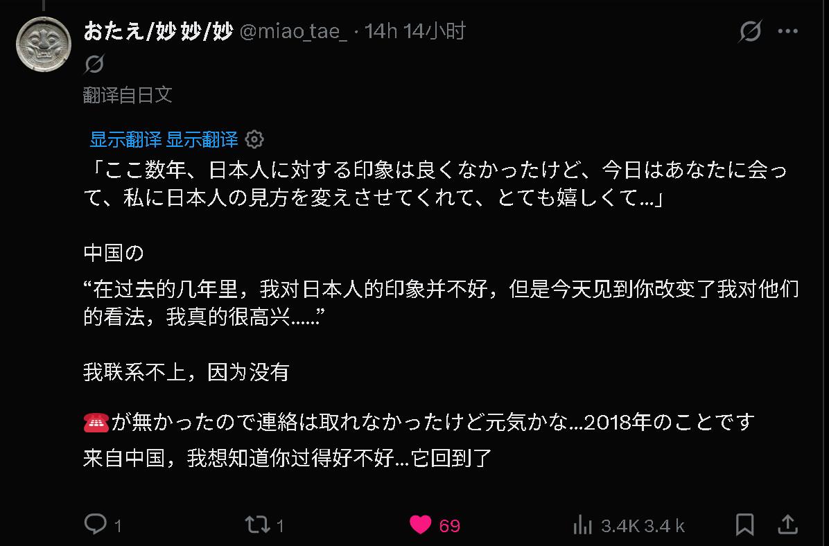 谁在2018年新疆旅游时认识了日本女士,站出来X上有个30岁的日本女士在找2018年在新疆认识的东大人(可能是个男的)。 这位日本女士:30岁,非常喜欢三国文化和东大古代史,在进行三国文化之旅,是个背包客,去过大约25个国家旅行,有个东大老公,2018年3月她在乌鲁木齐的时候,和一个住在同一家旅馆的东大男士很投缘,最后一起观光了几天,在最后一天,男的给她写了张纸条一封信。这位日本女士想知道你过得好不好。