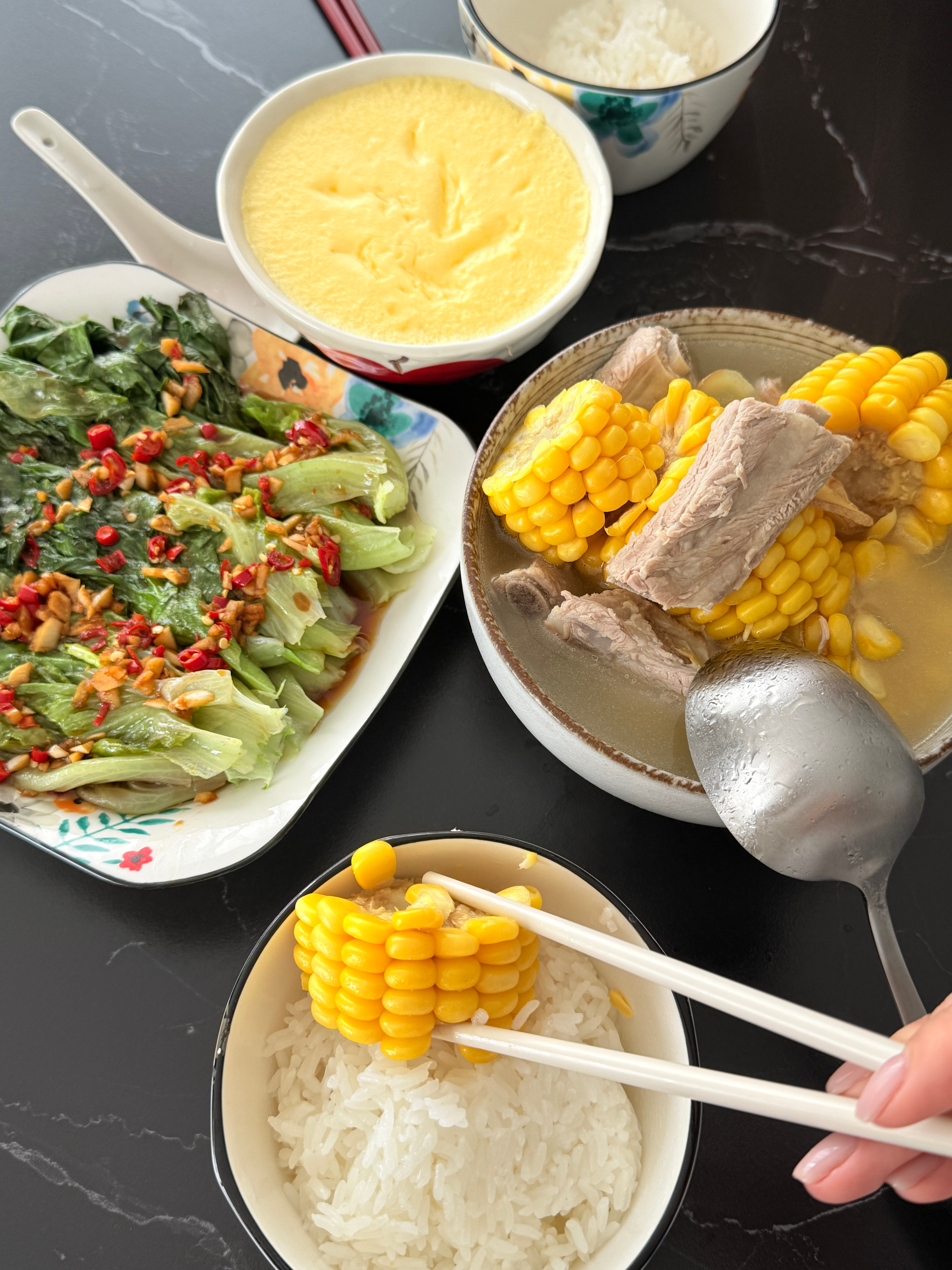 今天中午在科技园那家新开的称重快餐,夹了青菜、炖蛋、排骨,觉得挺实在。结账57.