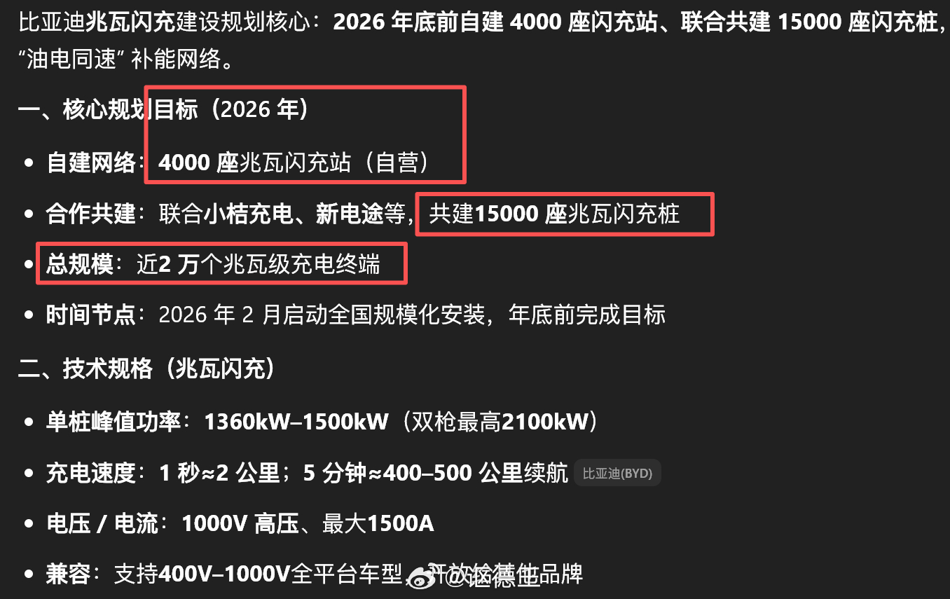 比亚迪不愧是做电池出身的,电池技术实力雄厚,第二代闪充技术搭配储能柜,在第二代刀片电池上实现了9分钟从10%充到97%的超快速度。作为对比,无储能的理想5C超充站,在理想纯电车上从10%充到95%需要17分钟左右,所以二代闪充确实相当于10C的充电速度,非常牛逼。最重要的是,比亚迪承诺今年内在高速公路上建设2000座闪充站,这对所有纯电车主来说都是大好事,所有在高速上建站的车企都必须吹爆。按照公开的设计,每个桩有两把枪,共搭配2个储能柜,每个柜子里有185度的储能电池,共计370度。不知道高速上的站能配置几个桩,如果也是1个,那370度的电池在按照平均每台车充50度电的情况下,大约连续充7台车后将耗尽,之后就只能依靠电网的电来充了,充电速度就看比亚迪能申请到的电容量了。日常充电需求没那么旺盛,储能柜肯定是完全足够的,节假日繁忙的服务区如果排队充电,后面的体验就只能跟普通超充站差不多了,但不管怎样,有总比没有强。比亚迪发布二代刀片及闪充