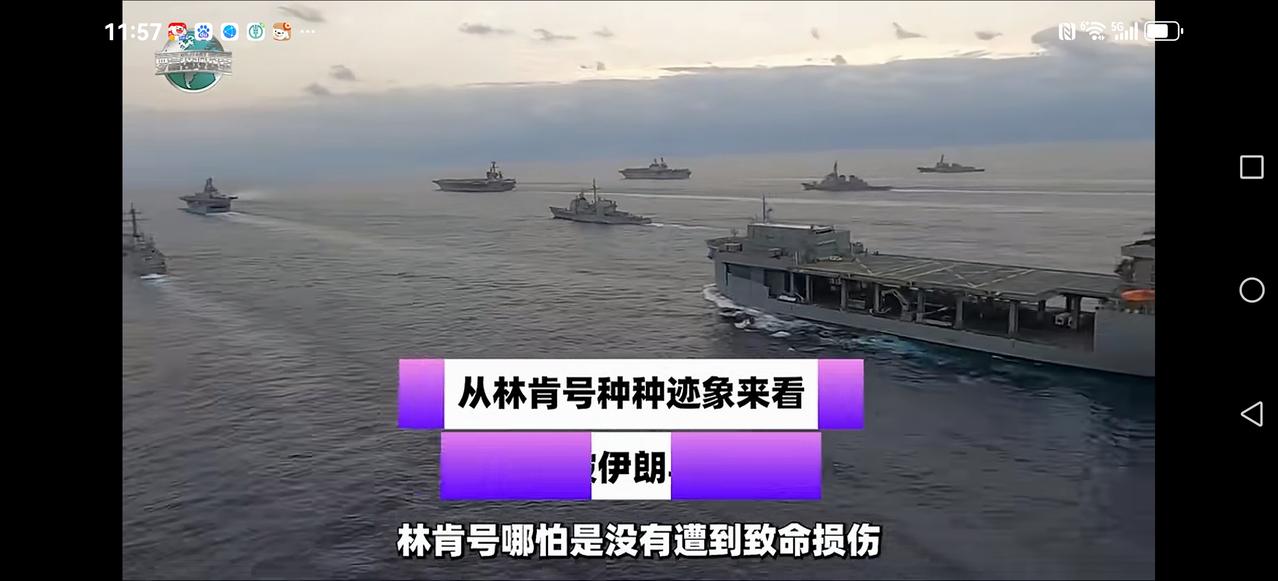 【他认为被击中】 林肯号到底有没有击中?成为悬念。 其中,这位大咖认为被击中了,理由就是林肯号后撤1000公里。 按照舰载机的活动半径,那么林肯号上舰载机就不能执行对伊朗作战。 所以这位大咖认为被击中了。 因为伊朗超音速导弹,很难预防,即使航母四道防备系统,依旧会被突破。 没想到信息社会发达今天,林肯号到底击中没有成为悬案?一道谜?