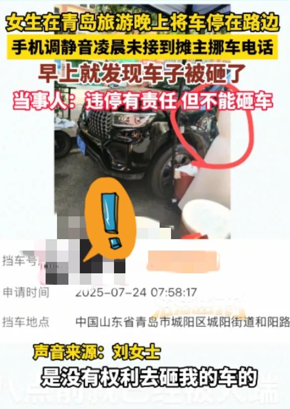 “严查到底!”山东,一女子来青岛旅游,晚上将车子停放在了路边,不料,该路段是早市经营点,她的车占用了摊主的位置。凌晨4点到6点,摊主一直给女子打电话挪车,但女子手机开了静音没有听到,等女子去开车时就看到车子被人砸了!警方调取监控发现那个位置是盲区,什么都没有拍到。 本来出来旅游是件开心事儿,这位来青岛游玩的女士,大概也没料到自己会遇上这样的糟心情况。 晚上逛完街,拖着疲惫的身子找地方停车,看到路边有划线,看着像是能停的样子,就没多想,停好车锁好门,就回酒店休息了,压根没注意到这里是早市的经营点。 她不知道,这条街到了深夜,就有了不一样的规矩。白天可能看着没什么特别,到了凌晨三四点,就成了早市摊主们的天下,他们要在这里摆摊谋生,抢占摊位、整理货物,都是每天的常态。 而这位女士的车,刚好停在了早市摊位的出货通道口,直接堵死了路,帐篷拉不开,进货的推车也过不去,几十个摊主的生意都被耽误了。 对这些靠早市摆摊养家糊口的摊主来说,早上的时间就是金钱,多耽误一分钟,就少一分收入,心里肯定着急。 从凌晨4点到6点,这段黄金准备时间里,摊主们一直给这位女士打挪车电话,前前后后打了不少,可女士为了睡个安稳觉,手机开了静音,一个都没接到。 眼看着天亮了,早市的营业时间快到了,车子还是没挪走,有人彻底按捺不住脾气,一时冲动就抄起东西,对着车子砸了过去。 等这位女士早上起来去开车的时候,一下子就傻了眼,副驾驶的车窗碎得满地都是,车门上全是密密麻麻的坑,看着特别吓人。 让人觉得奇怪的是,车里的钱包、手提包什么的都没丢,很明显,对方不是来偷东西的,就是单纯为了泄愤,故意砸车。 女士赶紧报了警,可警方调取周边监控的时候,才发现车子停放的那个位置刚好是监控盲区,什么都没拍到,根本找不到是谁砸的车。 后来问周边的摊主,大家要么说不知道,要么就装傻,没人愿意说出实情。 摊主们也觉得委屈,说自己的生意被耽误,损失惨重,可再委屈,也不能用砸车这种暴力方式解决问题。 毕竟这位女士也不是故意的,只是不知情占用了摊位位置,手机静音没接到电话,也不是故意不挪车。 事情发生后,街道也紧急加装了监控,还装了大喇叭循环提示这里禁停,可这些补救措施,对已经被砸坏的车子来说,根本没什么用。 青岛是靠旅游发展的城市,发生这样的事,不仅让游客寒心,也影响了城市的形象。 不管是游客不知情停车,还是摊主冲动砸车,都得有个合理的说法,砸车这种暴力行为,必须严查到底,才能给游客一个交代,也能规范早市的经营秩序。 大家对此怎么看?欢迎评论区留下您的观点!