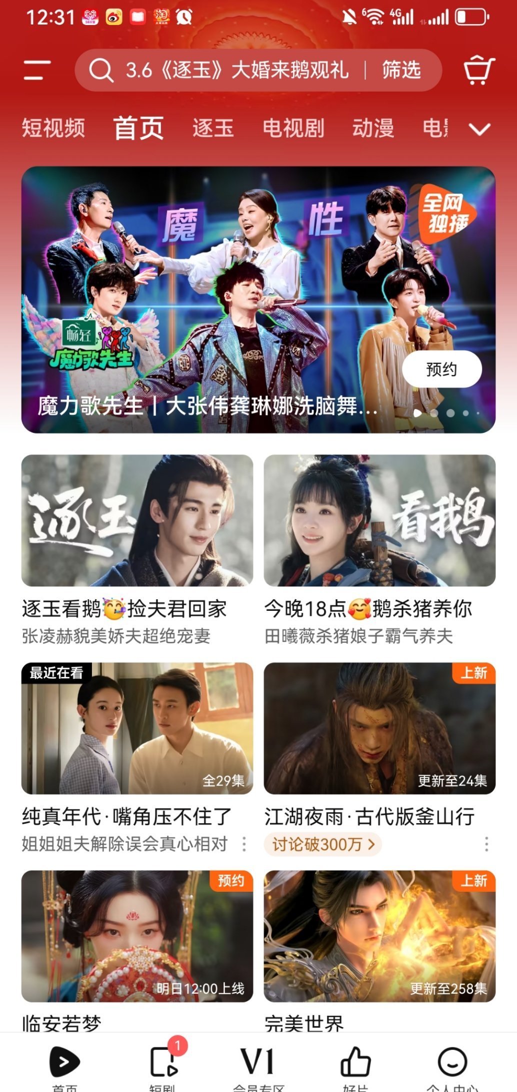 平台分销是因为不看好这个结论,在逐玉这里推翻了。一周前就站内搜索框预热,APP图标预热,开播送10w一日追剧卡,早早给固屏待遇。