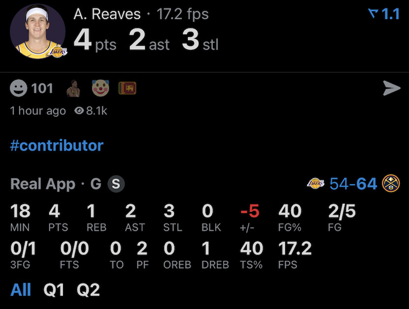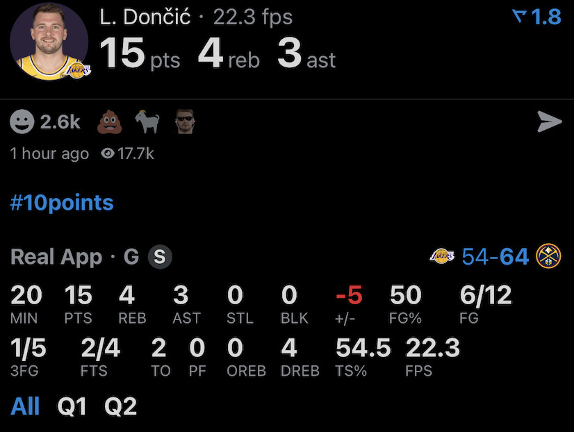 6投5中,罚球2中2,12分5篮板2助攻1抢断1盖帽0失误,正负值-10,如何评价上半场詹姆斯表现?如何评价东契奇和里夫斯表现?湖人vs掘金