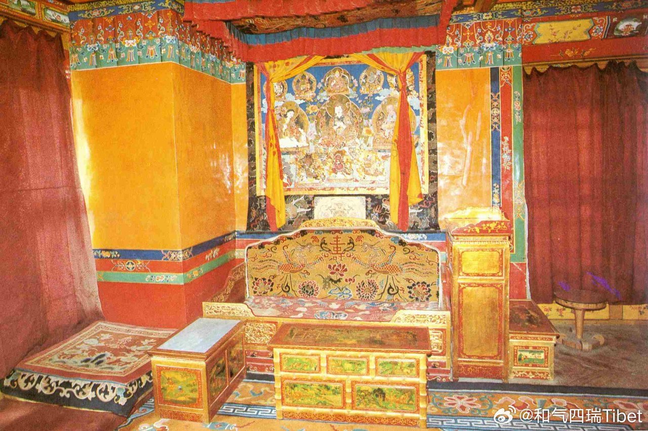 拉萨的罗布林卡是西藏园林建筑的典范。1985年西藏自治区文物管理委员会编写的《拉萨市文物志》记述,罗布林卡始建于18世纪中叶的七世达赖喇嘛格桑嘉措时期,有以格桑颇章为主体的建筑群,后经八世达赖喇嘛绛白嘉措扩建,增加以措吉颇章为主的建筑群。1922年,十三世达赖喇嘛土登嘉措时期,由近侍土丹贡培设计和主持,在罗布林卡西端修建了以坚赛颇章为主体的建筑群。坚赛颇章宫为一座典型的庭院式藏式建筑,共三层,屋顶饰牦牛法幢、八吉祥图案,富丽庄严。一层为主殿,长22.8米,宽18.5米,内由浮雕精美的四根长柱和22根短柱组成;二层为十三世达赖喇嘛土登嘉措的卧室;三层有“斯喜白巴”殿。每层殿内均绘有精美壁画。1926年,在坚赛颇章西约60米,增建有二层藏式建筑,取名格桑德吉,屋顶饰镏金经幢和牦牛尾法幢,底层为库房,二层为十三世达赖喇嘛土登嘉措密宗修行室。后来,又在格桑德吉南10米处,建一平顶藏式建筑,称为“曲敏确杰”,为十三世达赖喇嘛土登嘉措的静房,晚年多居于此。