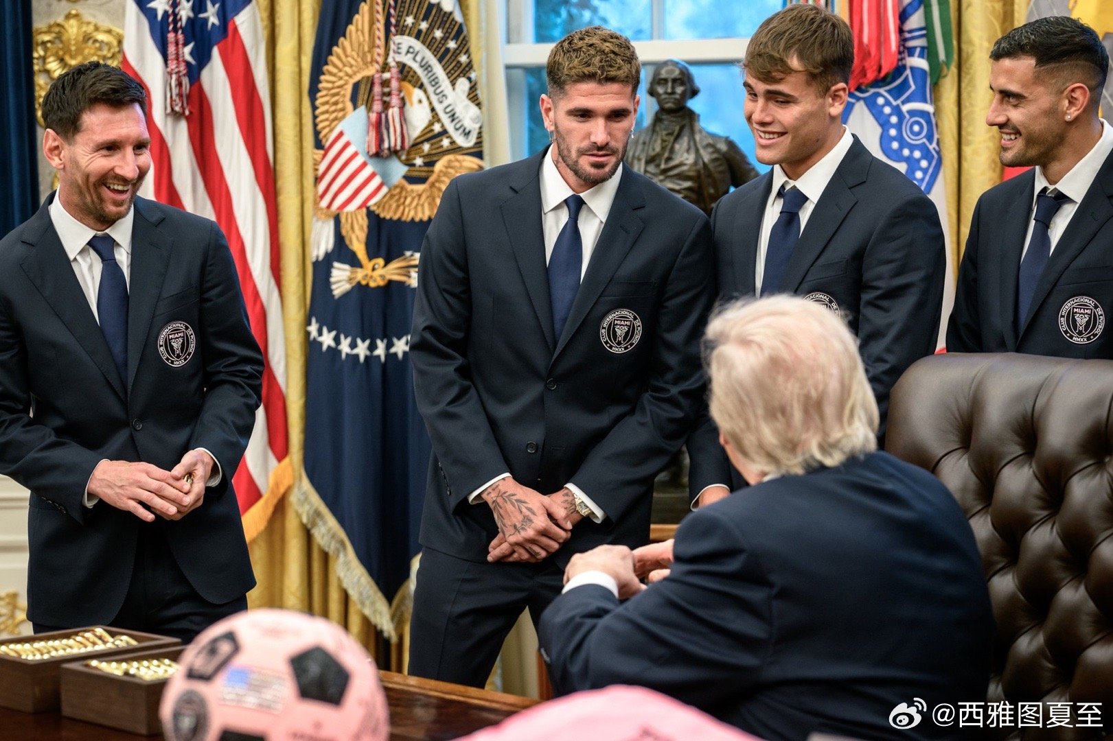 梅西与C罗的差别有多大?从川普接见就能看出来。梅西是作为迈阿密国际队长接受川普