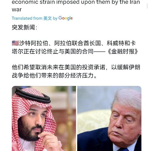 沙特带头对美国进行施压了!3月6日,根据外媒报道,外媒称,沙特阿拉伯、阿拉伯联合酋长国、科威特、卡塔尔正在讨论终止与美国的合同。他们希望取消未来在美国的投资承诺,以缓解伊朗战争给他们带来的一些经济压力。很显然,中东紧张局势正在升级,好巧不巧,偏偏在这个时候,海湾国家放出考虑终止对美国的投资承诺,这绝不是偶然。 海湾国家的这一动作,明显就是在对美国进行施压。现在中东的战火外溢到了海湾国家,美国不仅无力保护,而且海湾国家自身的能源出口还受到了巨大的影响。从海湾国家的角度而言,如果冲突不降温,这些国家的经济都将出大问题。到时候,这些国家哪里拿的出大笔的资金投资美国呢? 这个疑问正在被现实不断印证。沙特、阿联酋、科威特、卡塔尔四国的讨论并非临时起意。《金融时报》3月6日的报道明确提到,四国已就终止部分对美合同、取消未来资本投入展开密集磋商。 这些国家曾经向美国作出过惊人的资金承诺。沙特在2025年11月升级了对美投资计划,总额高达1万亿美元,重点覆盖人工智能、芯片研发和军工采购等领域。阿联酋更是规划了1.4万亿美元的十年对美投资,涉及半导体、能源和制造业多个板块。 这些承诺背后,是双方长期以来“经贸换安全”的合作逻辑。特朗普政府2025年5月的中东之行,正是通过签署一系列大单,巩固了这种盟友关系。 现在这一切都因伊朗战争的升级而动摇。伊朗的反击行动直接波及了这些海湾国家的核心资产。3月5日,阿联酋阿布扎比再次遭遇导弹袭击,防空系统紧急启动拦截。 卡塔尔首都多哈在近期遭到14枚弹道导弹和4架无人机的攻击,内政部被迫发布全国安全警报。巴林的国家石油公司炼油厂被导弹击中,引发的大火严重影响了生产运营。 战火带来的恐慌情绪正在冲击这些国家的经济根基。迪拜、多哈等城市的豪华酒店入住率大幅下滑,外资出现恐慌性撤离。 更关键的是,伊朗已经明确表示战时有权控制霍尔木兹海峡通行。这条全球五分之一海运石油的必经通道,一旦管制升级,将直接掐断海湾国家的经济命脉。 这些国家的财政状况本就面临压力。世界银行数据显示,2024年海合会国家石油收入已收缩2%,沙特、科威特等国的财政赤字持续扩大。 尽管非石油产业取得了一定增长,沙特的“2030愿景”推动旅游业和可再生能源投资,阿联酋的金融服务、物流行业保持增长,但这些成果在战火面前显得不堪一击。 美国未能兑现当初的安全承诺。海湾国家曾花费巨额资金购买美国武器,沙特单是防务设备采购就承诺了1420亿美元。他们原本期望这些投入能换来可靠的安全庇护,现实却是美军基地的存在让自己成为伊朗的打击目标。卡塔尔乌代德空军基地、巴林美国海军第五舰队总部周边都先后出现爆炸事件。 伊朗议会议员阿米尔·塔比蒂的警告更让这些国家陷入两难。他明确要求海湾国家赶走领土上的美国人、迁走美国基地,否则伊朗的导弹将持续瞄准这些地区。这种威胁并非空穴来风,哈梅内伊遇袭身亡后,伊朗的反击已没有任何红线。 四国讨论终止对美投资,本质上是在向美国传递明确信号。他们需要美国正视地区安全局势,采取有效措施降温冲突。这些国家的资本投入从来都不是无条件的,而是与自身安全利益深度绑定。美国如果无法为盟友提供稳定的发展环境,这些巨额资金承诺自然失去了兑现的基础。 事实上,双方的传统合作基础早已出现裂痕。美国能源独立政策让美沙在能源领域从互补转为竞争,“9·11事件”后双方关系更是多次遭遇低谷。特朗普政府的“经贸换安全”模式,本就依赖海湾国家的经济实力和美国的霸权威慑。现在这两个前提都已不复存在。 国际社会正在密切关注这一动态。中国已经积极介入斡旋,王毅外长分别与相关各方通电话,呼吁停火止战、重回对话谈判。联合国安理会也召开了紧急会议,尽管未达成共识,但各方克制的呼声正在上升。 沙特、阿联酋等国的动作不是要彻底与美国决裂。他们只是在自身利益受损的情况下,采取的必要止损措施。这些国家清楚,持续的冲突只会让经济状况进一步恶化。取消对美投资承诺,既是缓解自身经济压力的现实选择,也是迫使美国重新审视中东政策的有效手段。 局势的发展仍充满不确定性。但可以肯定的是,海湾国家已经不再愿意为美国的地区战略买单。他们的选择正在改写中东地区的力量格局,也给美国的霸权政策敲响了警钟。在生存与发展的核心利益面前,任何盟友关系都需要重新掂量。
