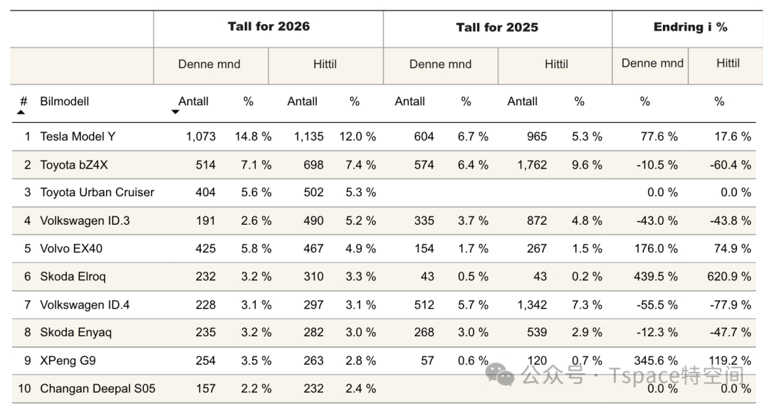 从具体车型表现来看,特斯拉Model Y稳居挪威乘用车销量冠军,销量成绩达到第二名车型的2倍之多。