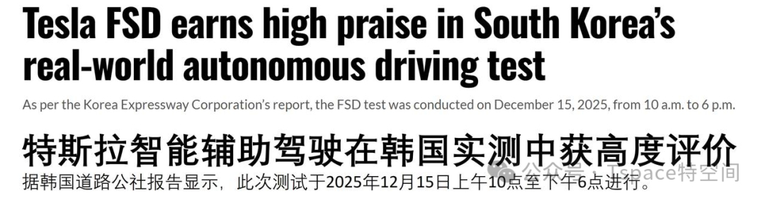 不久前,韩国国土交通部下属的韩国道路公社(Korea Expressway Corporation)对特斯拉智能辅助驾驶进行了一场长达8小时的深度实测,覆盖高速公路与复杂城市道路,全面检验系统在多样化场景下的表现。