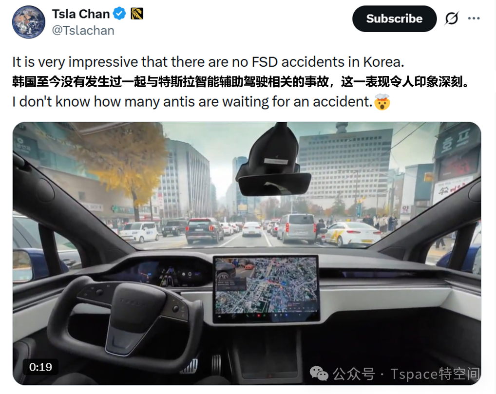 海外博主Tslachan 也发现,在韩国至今没有发生过一起与特斯拉智能辅助驾驶相关的事故,强大的安全表现令人印象深刻。