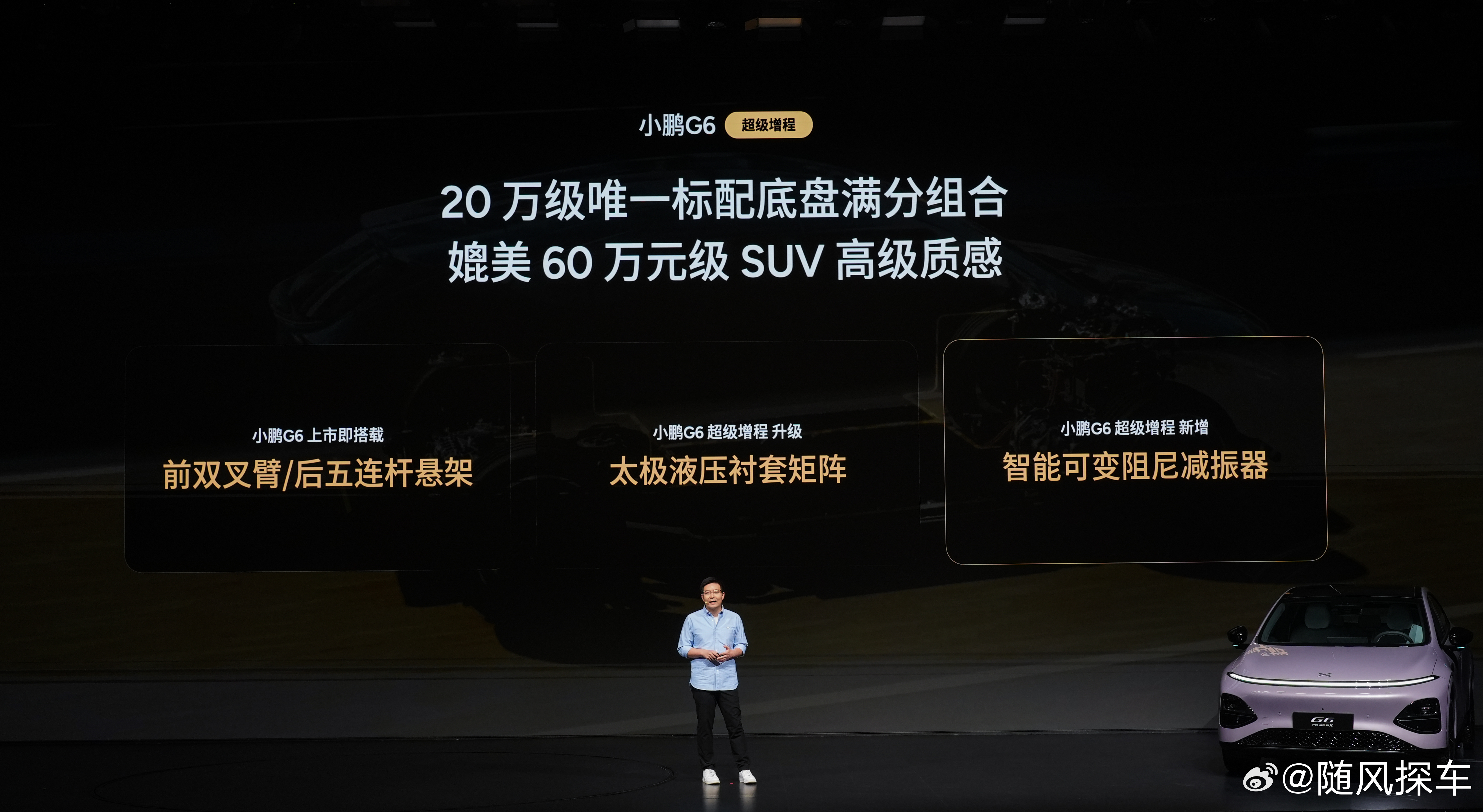 🔸20万级唯一ENC+RNC双源主动降噪,即使增程器启动,也能让家人在车上安静的打个盹🔸20万级唯一标配前双叉臂/后五连杆+太极液压衬套矩阵+智能可变阻尼减振器,拥有媲美60万级SUV的高级质感。小鹏G6超级增程六项全能一步到位小鹏G6超级增程升级搭载DCC底盘
