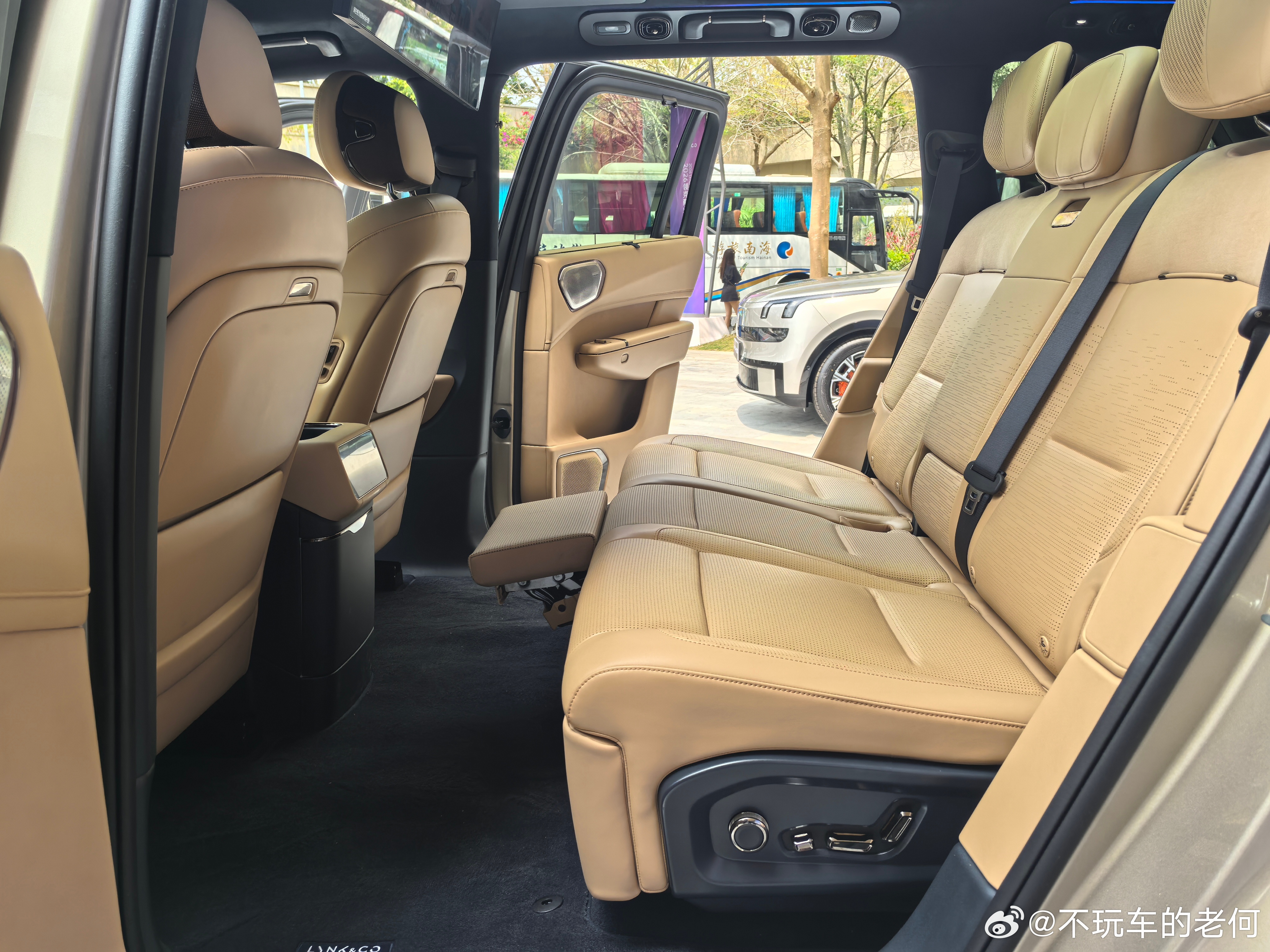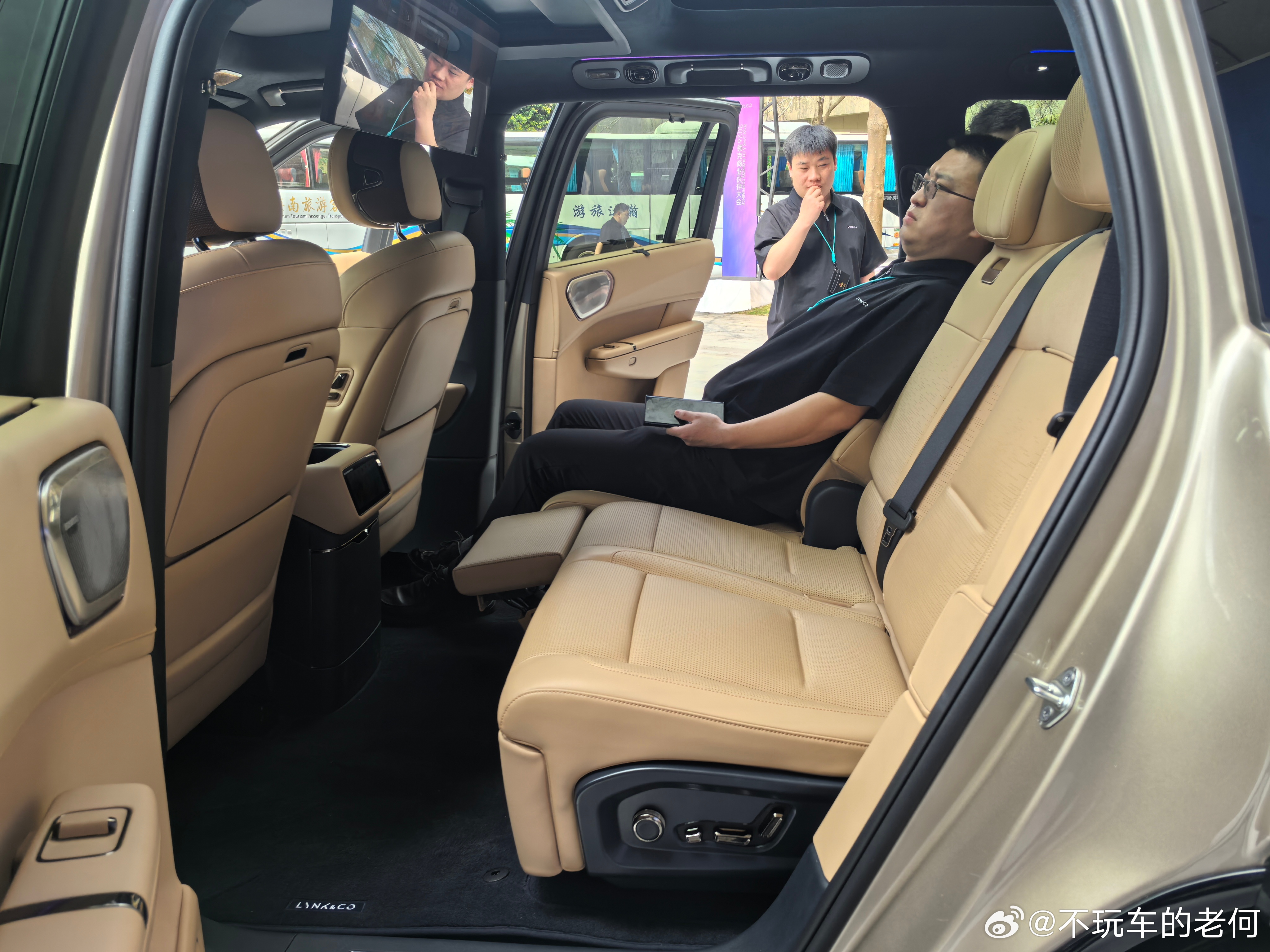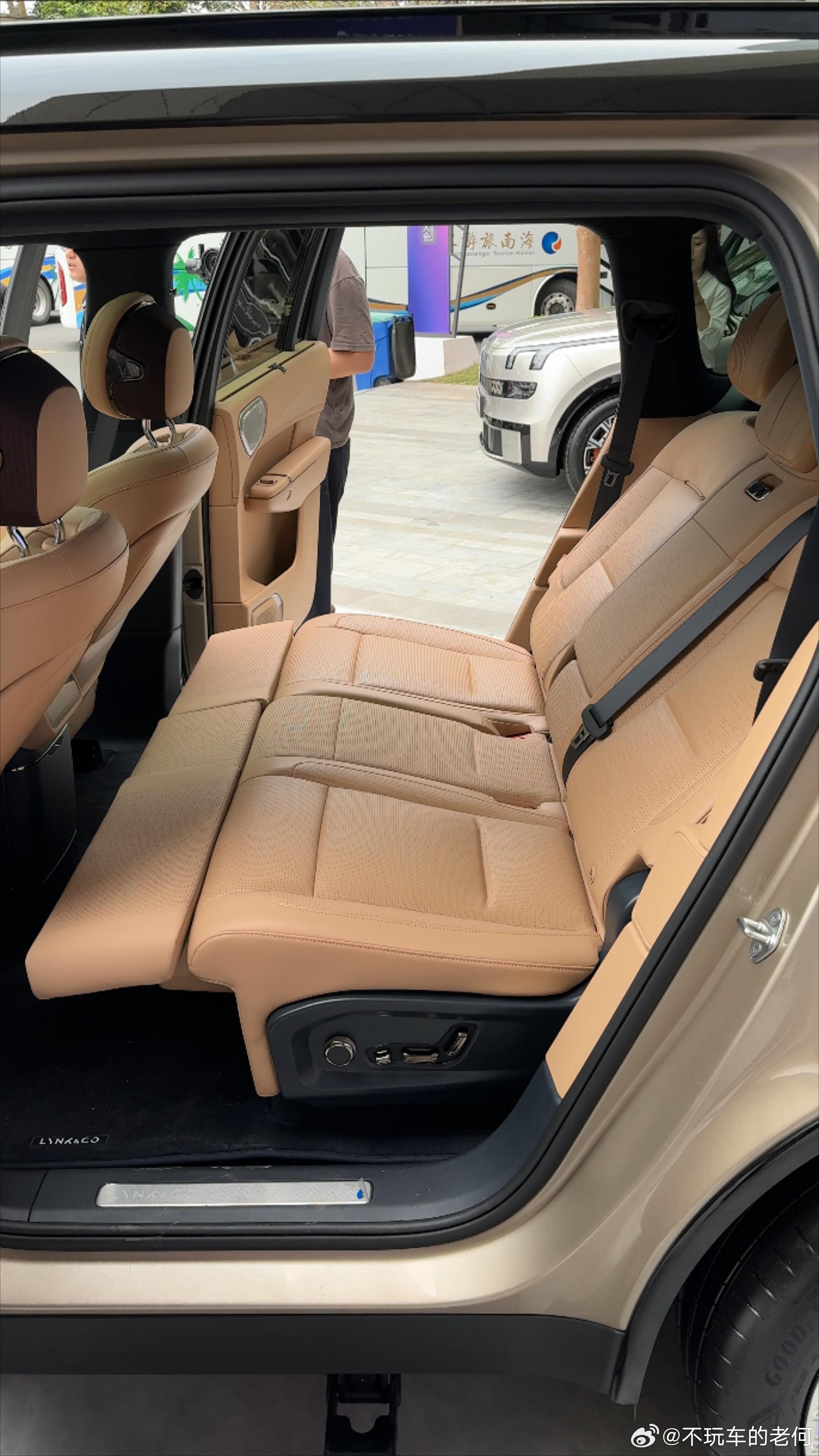 除此之外可以看到的配置和现有车型基本没区别,例如电动调节方向盘、手动遮阳帘、后备箱里的控制空悬按钮等,还是保证了大五座版的配置高度。领克