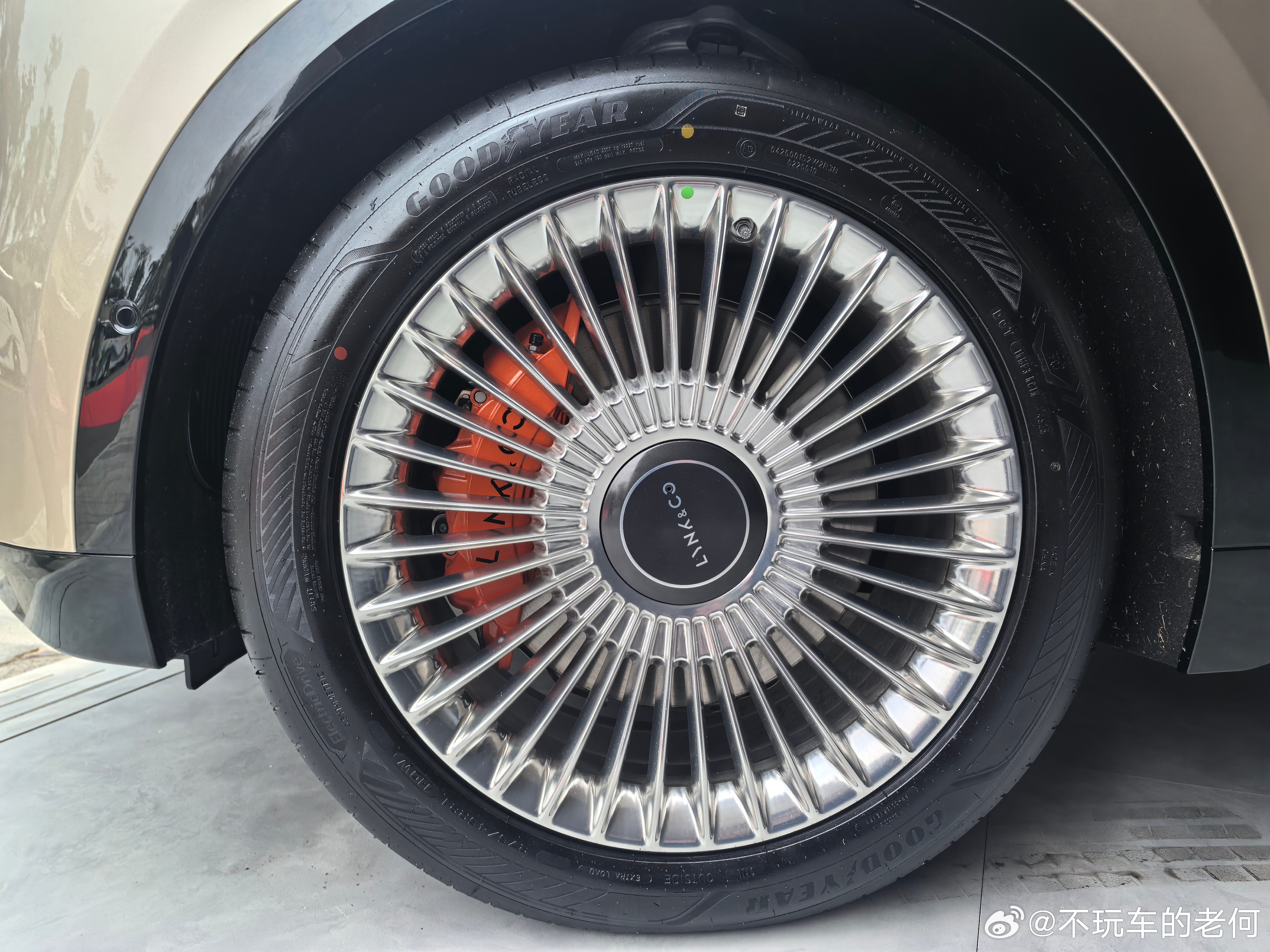 黑色轮毂明显运动感强一些,轮胎规格275/45R21,和六座版是一致的。