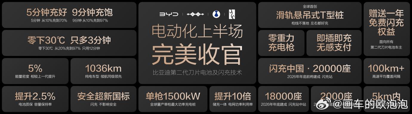 比亚迪董事长王传福表示,充电慢与低温充电难是电动化出行的核心顽疾,此次技术突破从根源解决用户里程与充电焦虑。秉持三大绿色梦想,比亚迪将以光储充一体技术为核心,于2026年底在海外规模化落地闪充站,从闪充中国走向闪充星球,以硬核中国技术引领全球新能源汽车产业跨越式发展。比亚迪闪充比亚迪第二代刀片电池来了