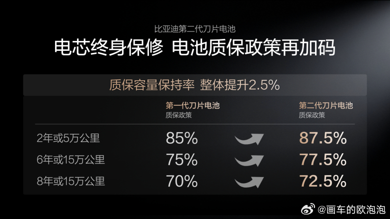 比亚迪通过打造锂离子高速通道与全温域智能热管理系统,让闪充对电池寿命几乎无影响,同时安全性能超越新国标。在此基础上,比亚迪升级电池质保政策,电芯依旧终身保修,容量保持率质保整体提升2.5%,兼顾速度、续航、安全与耐用性,重新定义全球领先动力电池标准。