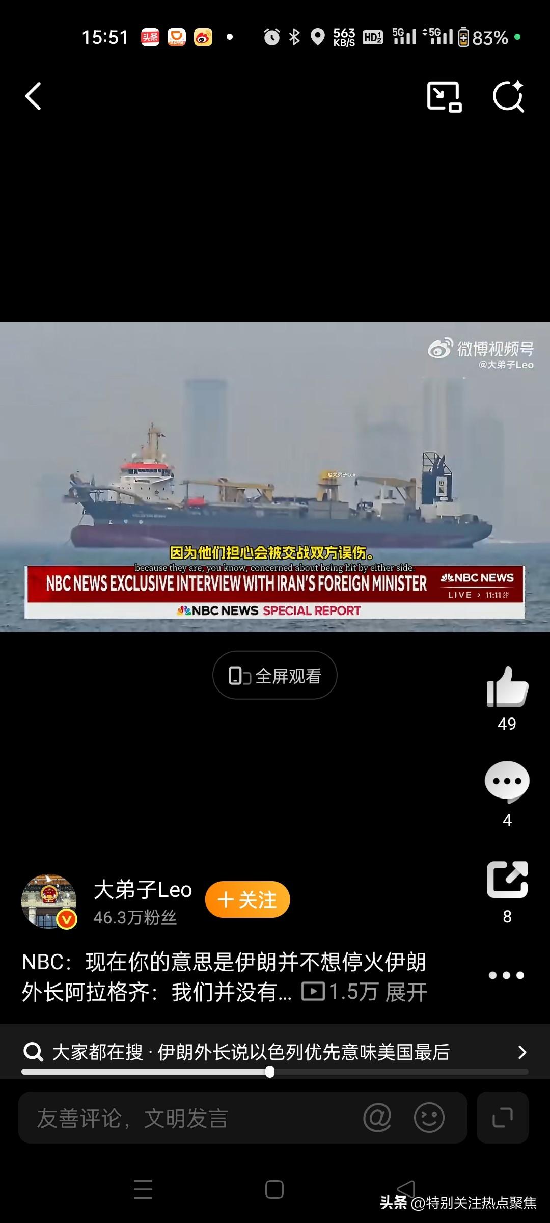 伊朗外长自开战以来多次表态矛盾,封锁霍尔木兹海峡,以及是否谈判 伊朗方面的表态确实呈现分层、矛盾、弹性施压的特点,我给你用最清晰的逻辑捋一遍: 一、关于霍尔木兹海峡:两套口径,软硬切换 1. 革命卫队(强硬) - 禁止美、以、欧及其盟友的军船、商船通行 - 声称发现即打击 2. 伊朗常驻联合国代表团/外长(官方外交口径) - 否认全面封锁海峡 - 称伊朗维护国际法与航行自由 - 外长明确说:目前无意关闭海峡,但战争持续则所有选项都不排除 👉 本质:只针对敌国,不全面封死;既威慑油价,又避免直接与全球为敌。 二、关于谈判:从“可谈”到“彻底不谈”的180°反转 开战前(2月下旬) - 称经阿曼斡旋的谈判是良好开端 - 认为可达成公平协议,愿意继续谈判 开战之后(3月以来) - 外长:不寻求停火,没有任何理由谈判 - 理由:美国两次在谈判中途发动攻击,信任完全破裂 - 官宣:不与美国进行任何形式谈判 👉 逻辑:不是矛盾,是信任被摧毁后的立场锁死。 三、为什么看起来“反复横跳” - 军方 vs 外交两套话语体系:军方负责威慑,外交负责留国际余地 - 对内强硬、对外留路:既安抚国内情绪,又不把和平路完全堵死 - 战略模糊:让美方猜不透红线,保持最大施压空间 伊朗外交大转向 伊朗怒怼美国 伊朗命运反思 美军合围伊朗 伊朗海峡危机 伊朗怒怼西方 伊朗上空封锁