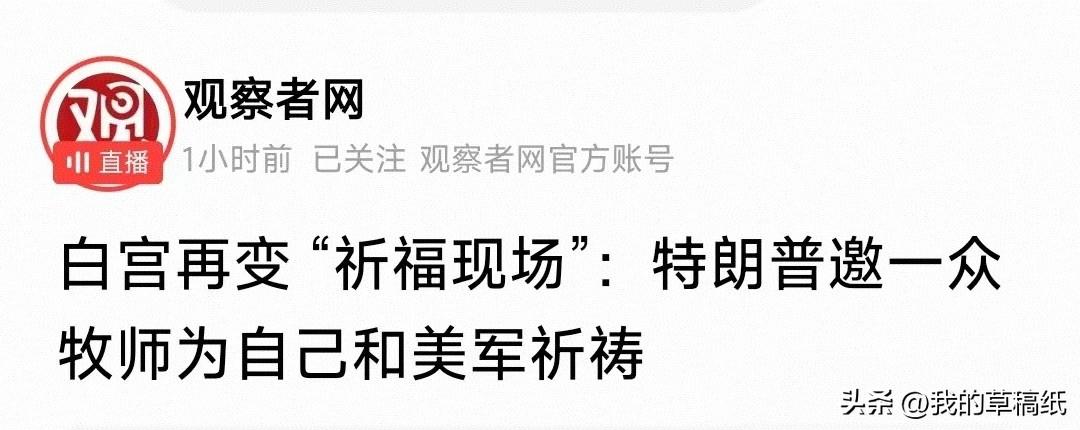 召一帮牧师祈祷“作法”,特朗普这波操作,上帝真的会买单吗? 刚刚看到这个新闻真是给我整不会了!特朗普把一群牧师叫到椭圆办公室,手搭着肩在那祈祷,说是为美军也为他自己。 说实话,我第一反应是:这是在拍电影还是演话剧? 网友评论区直接炸了!有人说得好:屠杀平民百姓、炸死无辜孩子、下令暗杀他国高官,这种人请谁来祈祷能洗干净手上的血?上帝?佛祖?还是哪路神仙? 我就纳闷了,那些孩子被炸飞的时候,他们的祈祷谁听见了?那些母亲失去儿子的时候,她们跪拜的神在哪? 牧师们手搭着肩,闭眼念念有词。画面很虔诚,但看着莫名讽刺。这让我想起那句老话:平时不烧香,临时抱佛脚。 你觉得呢?祈祷真能抵消战争罪行吗?评论区聊聊你的看法!