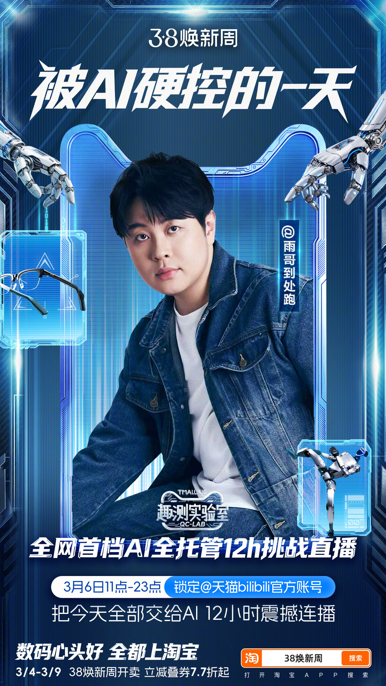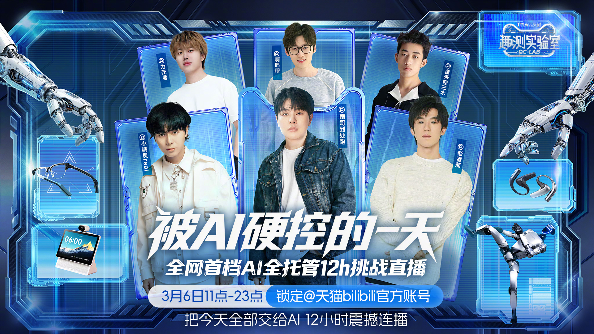【科技圈盛事!天猫一场直播汇集百款AI新品】3月6日11:00至23:00,天猫在上海重磅开启“被AI硬控的一天”12小时不间断直播。近百款AI新品首次集体亮相,从机器人到机器狗,从3D打印机到智能穿戴,前沿产品矩阵刷新行业认知。嘉宾挑战AI辅助下的九项生活任务——家务清洁、创作写歌、智能穿搭等,零距离感受AI如何从概念走向实用。锁定天猫bilibili官方账号,12小时全程直击,更有iPhone等AI好礼等你来拿~