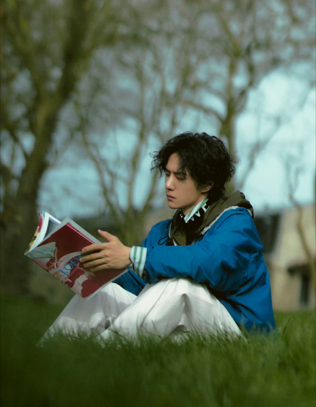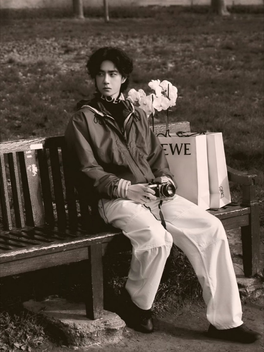 王一博巴黎时装周工作室出图——王一博这个侧颜好绝!衣服这个蓝色,是把我们的天空带