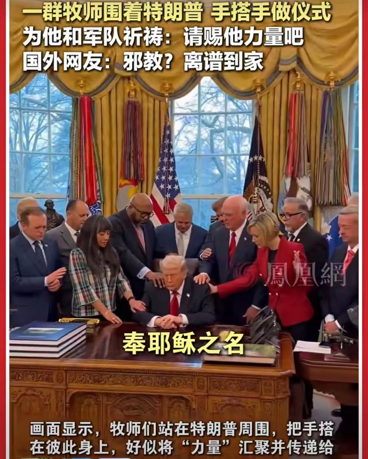 乔峰被武林高手围着!老特被牧师围着!架势都一样,都是透过手掌,武林高手传的是内力,这群美国牧师传的是啥? 也许伊朗的战争进度,让他有些不知所措!伊朗没有像委内瑞拉那样,失去首领后,迅速投降! 他感觉出乎意料,不知道该如面对持续的战争,沉重的债务,不断消耗的军备,以及可能的战争泥潭! 他像迷茫的羔羊,需要指引!