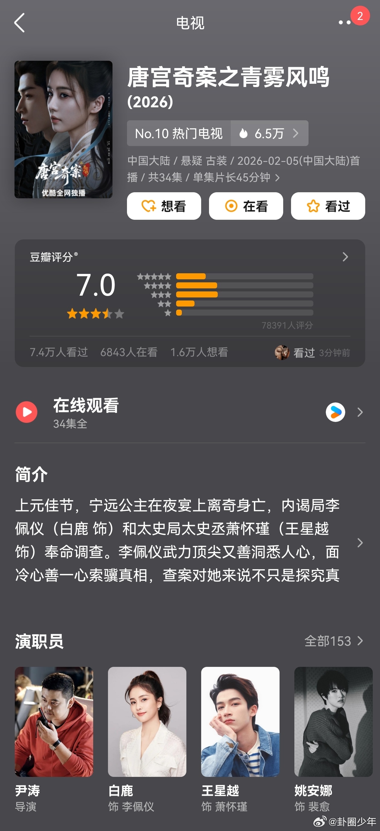 近期五部剧开分五部新剧评分出炉,《除恶》7.4分领跑,各剧口碑分化,反映不同观众审美偏好